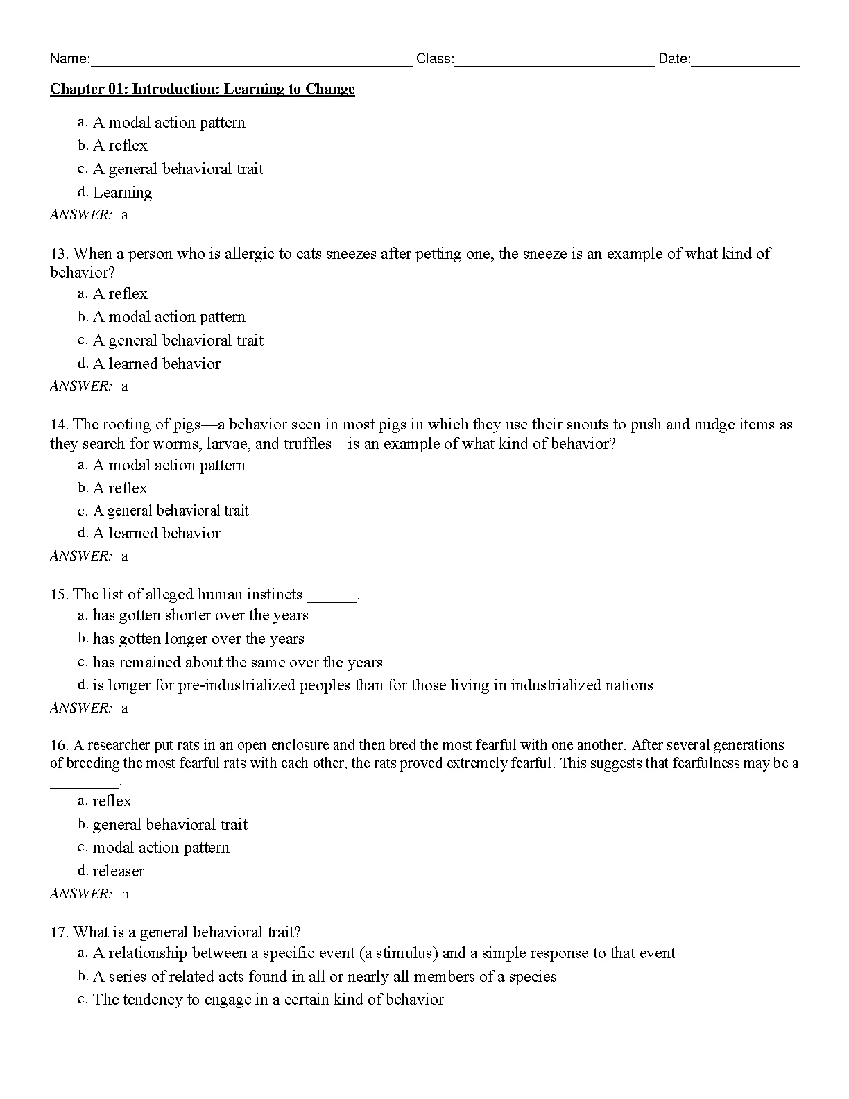 Learning and Behavior Active Learning Edition 8TH EDITION BY Paul Chance Ellen Furlong TEST BANK