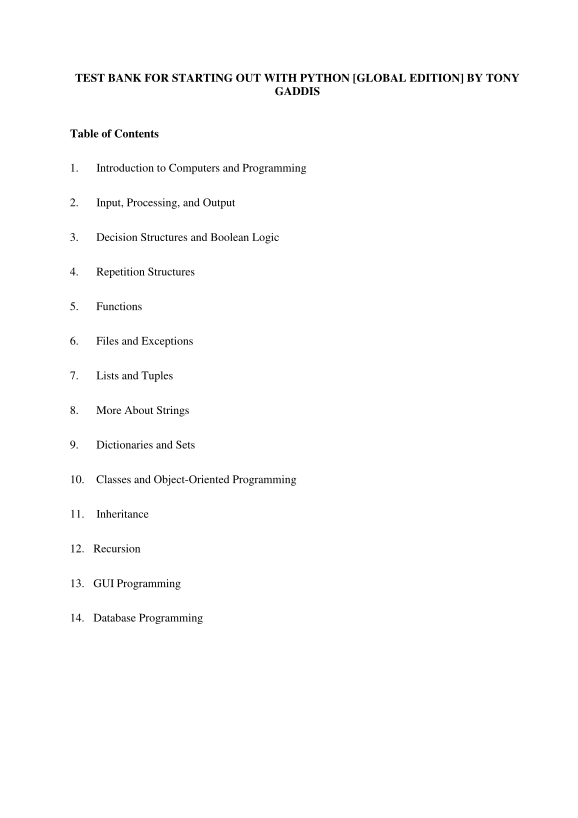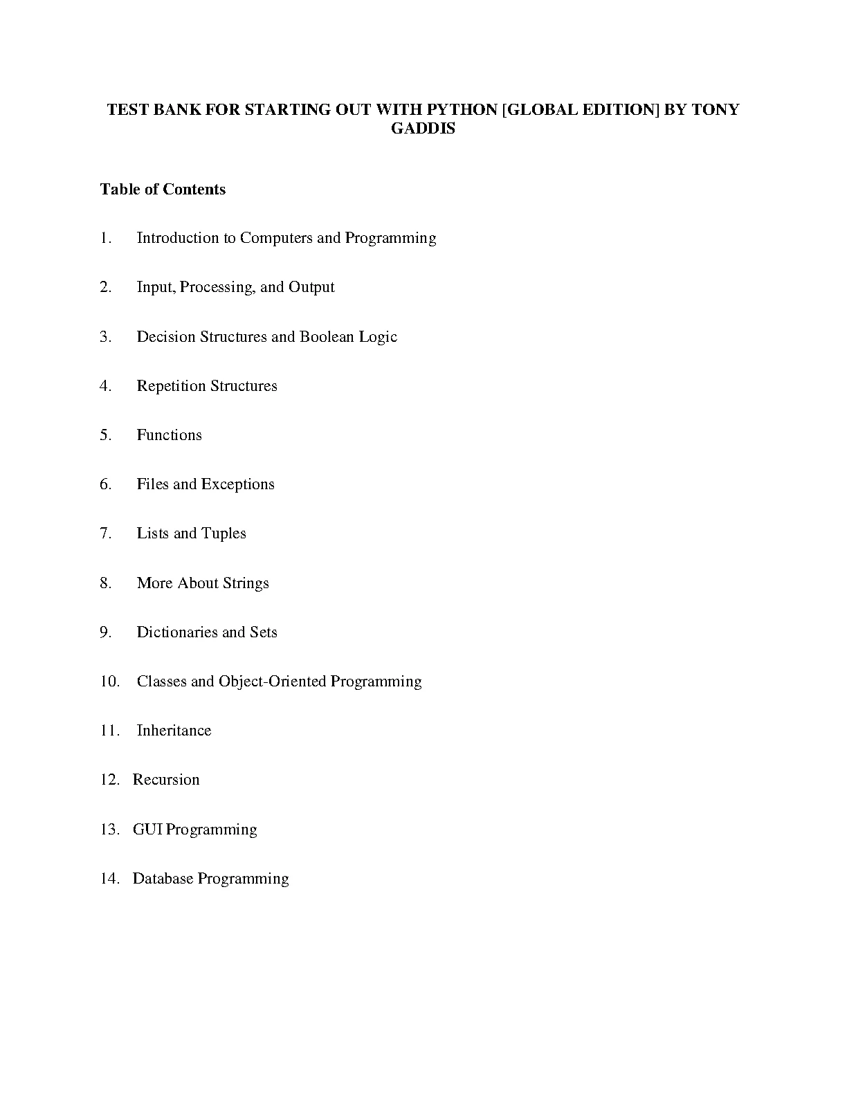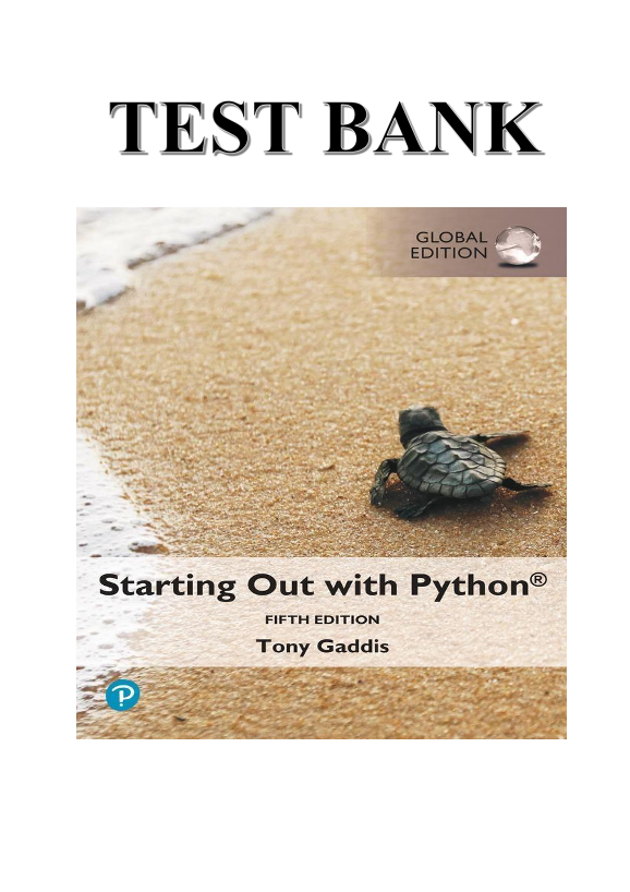 TEST BANK FOR STARTING OUT WITH PYTHON 5TH EDITION[GLOBAL EDITION] BY TONY GADDIS