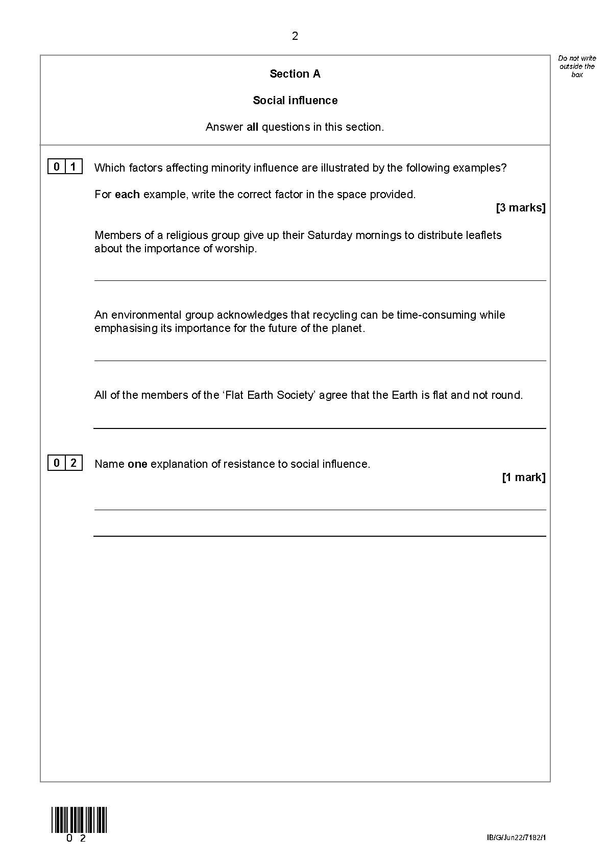 AQA A LEVEL PSYCHOLOGY PAPER 1 JUNE 2022 QUESTION PAPER (7182/1: Introductory Topics in Psychology)