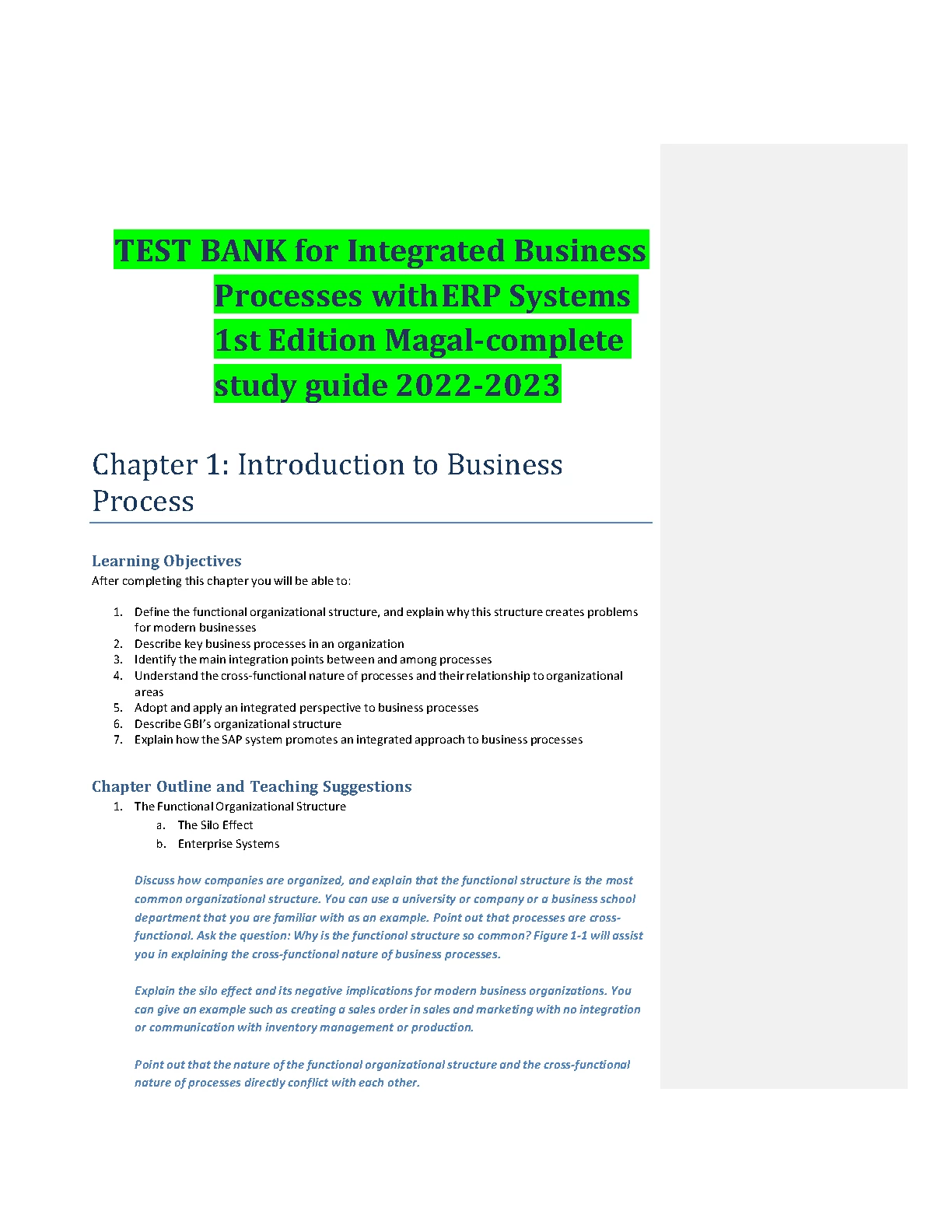 TEST BANK for Integrated Business Processes with ERP System 1st Edition BY Magal