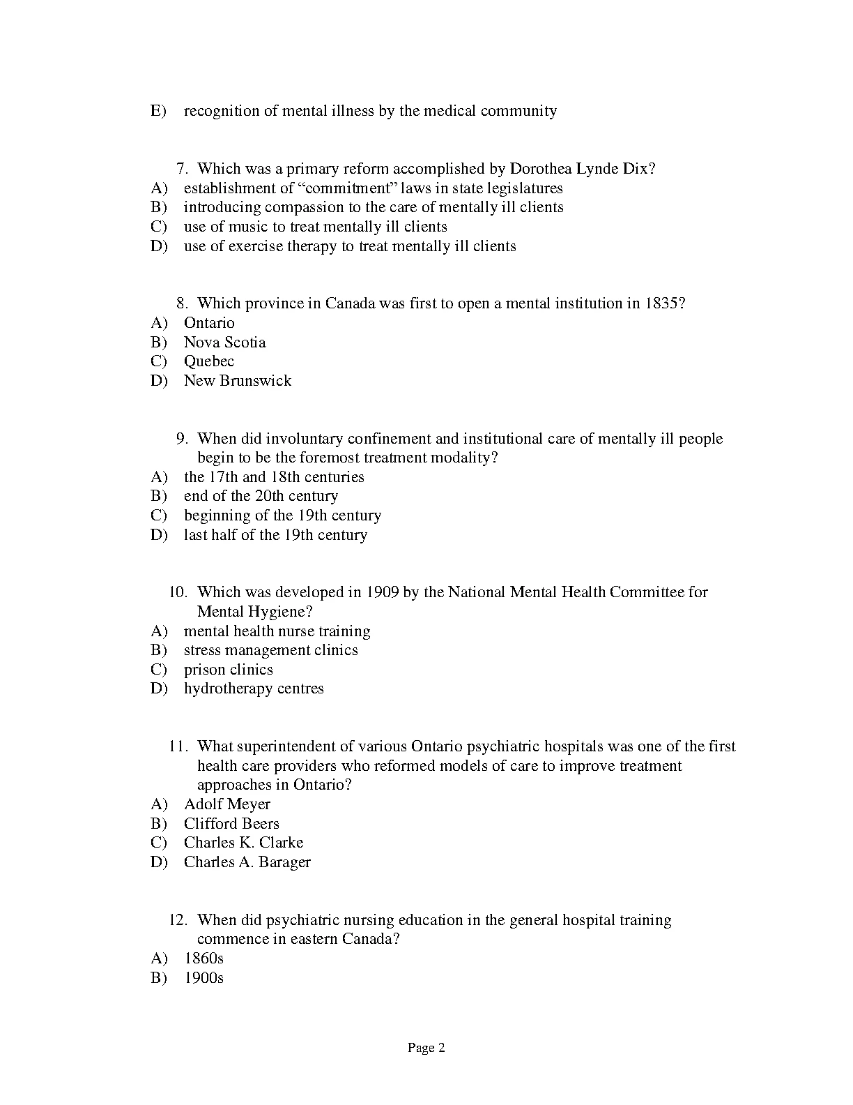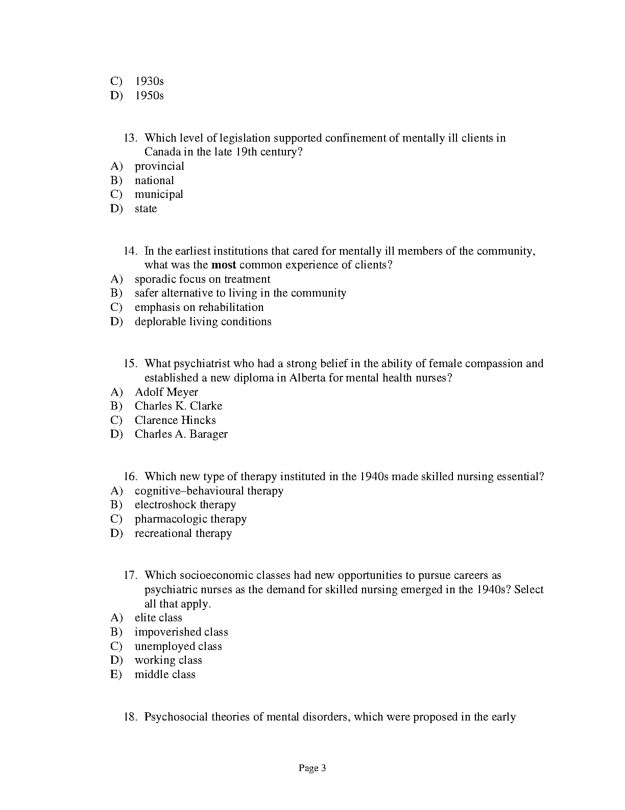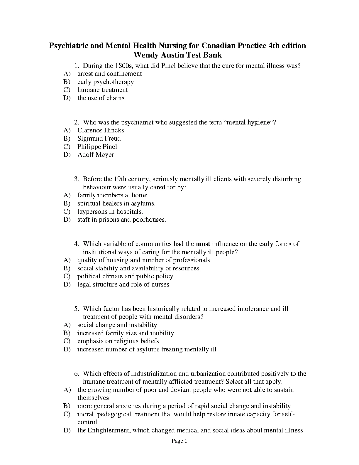 Psychiatric and Mental Health Nursing for Canadian Practice 4th Edition BY Wendy Austin Test Bank