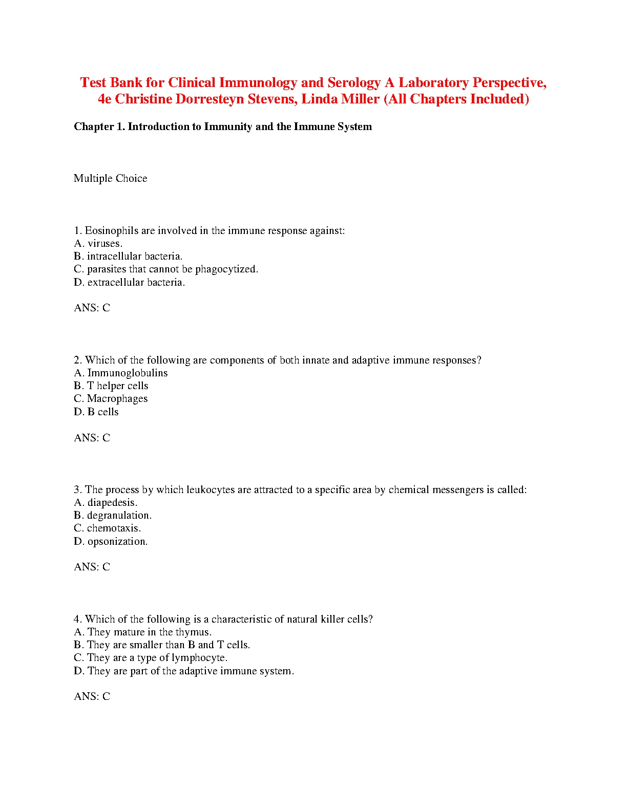 Test Bank for Clinical Immunology and Serology A Laboratory Perspective, 4TH EDITION BY Christine Dorresteyn Stevens, Linda Miller (All Chapters Included). DOWNLOAD on www.hackedexams.com INSTANTLY.