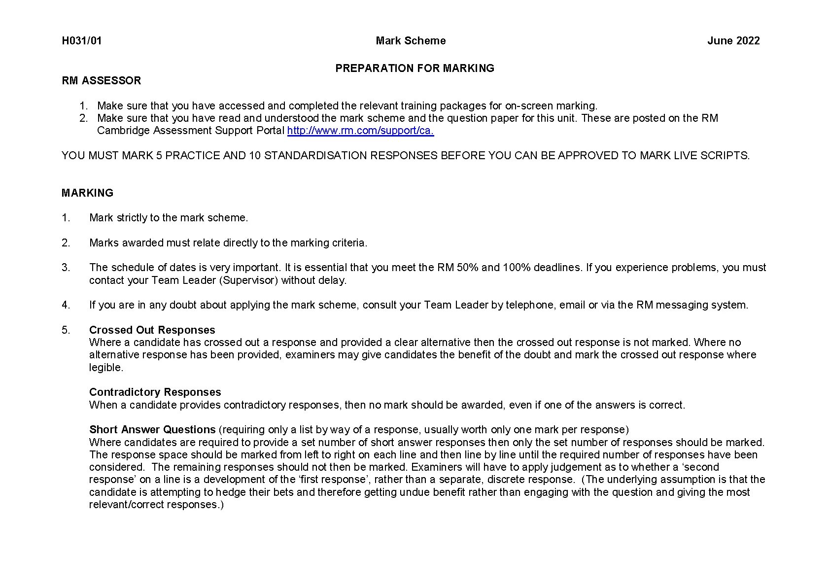 OCR AS BUSINESS PAPER 1 JUNE 2022 2022 MARK SCHEME (H031/01: The local business environment)