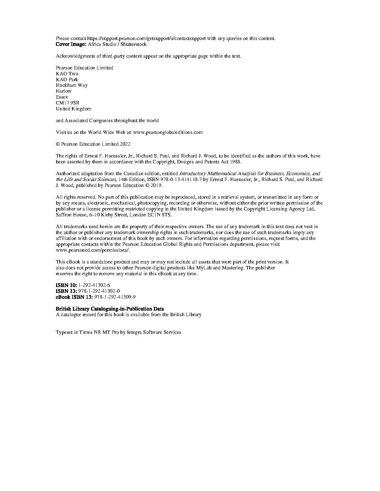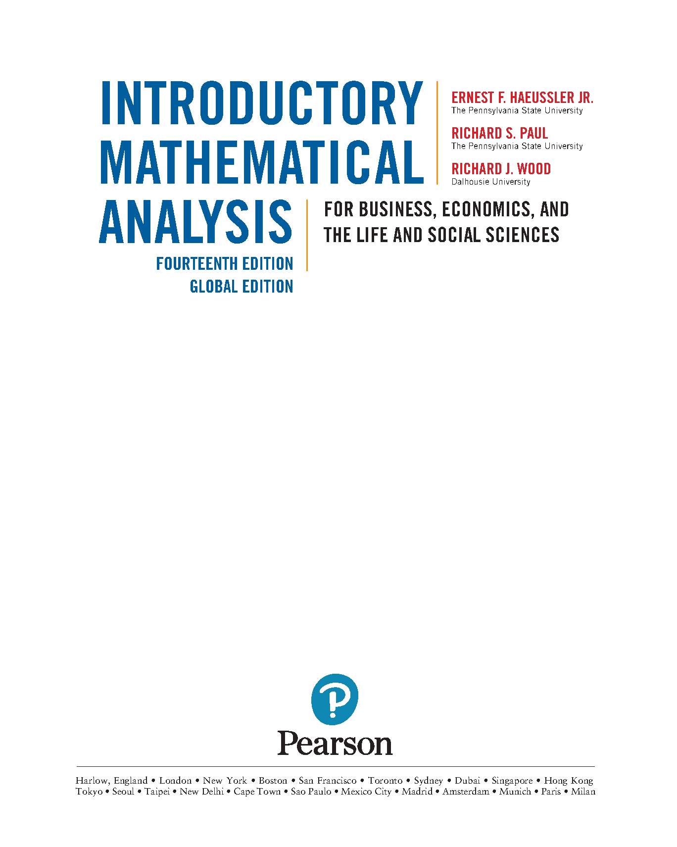 Introductory Mathematical Analysis, 14th Edition Global Edition by Ernest F. Haeussler Jr., Richard S. Paul, and Richard J. Wood