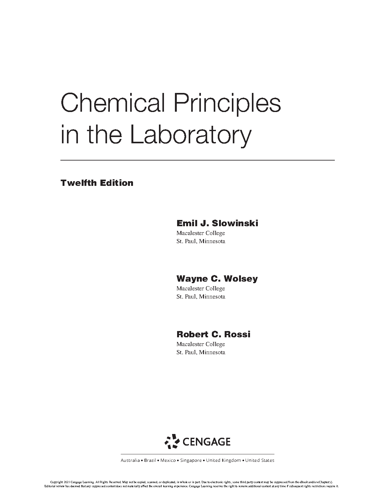 Chemical Principles in the Laboratory, Twelfth Edition by Emil J. Slowinski, Wayne C. Wolsey, and Robert C. Rossi: Essential Lab Guide for 2025/2026 Success