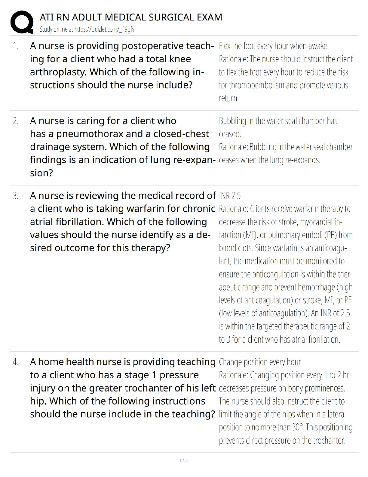 Unlock your full potential in Adult Medical-Surgical Nursing with this extensive ATI RN exam preparation resource for the 2025/2026 academic year. Featuring a robust collection of challenging questions and detailed rationales, this test bank is meticulously designed to help you thoroughly understand complex medical-surgical concepts, sharpen your critical thinking skills, and build confidence. Perfect for students aiming to pass their ATI exams and the NCLEX on their very first attempt, this guide ensures you avoid costly resits by mastering essential content. Prepare effectively, learn from expert rationales, and secure your success in adult health nursing.