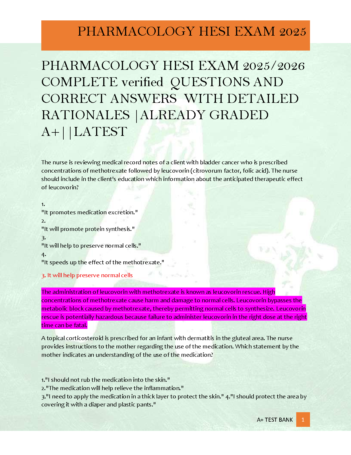 Unlock your full potential for the Pharmacology HESI Exam 2025/2026 with this meticulously compiled A+ Test Bank. This essential resource provides a comprehensive collection of verified questions, each paired with detailed, accurate rationales to deepen your understanding and solidify your knowledge. Designed to help you pass your HESI on the first attempt and avoid costly resits, this latest edition ensures you're fully prepared for the academic year. Master critical pharmacology concepts, clinical application scenarios, and patient safety, all presented in a format that mirrors the actual exam experience.