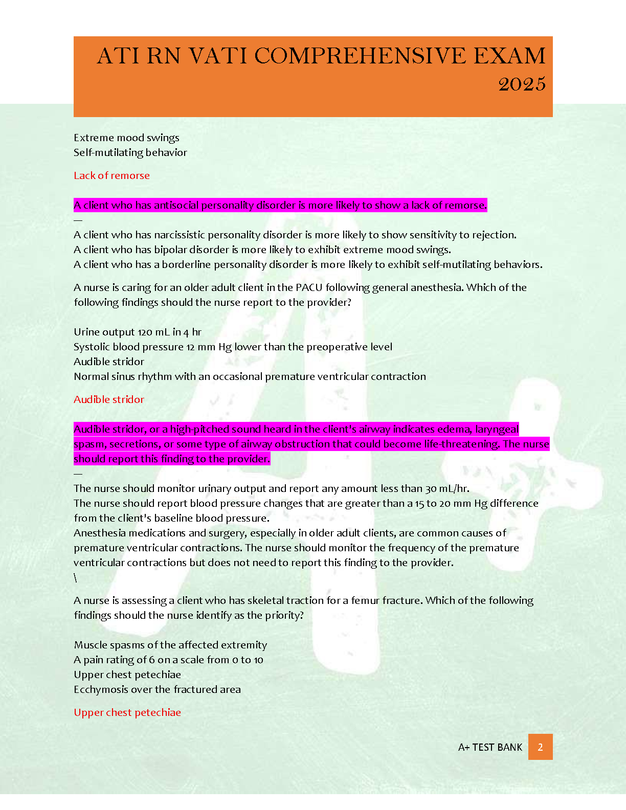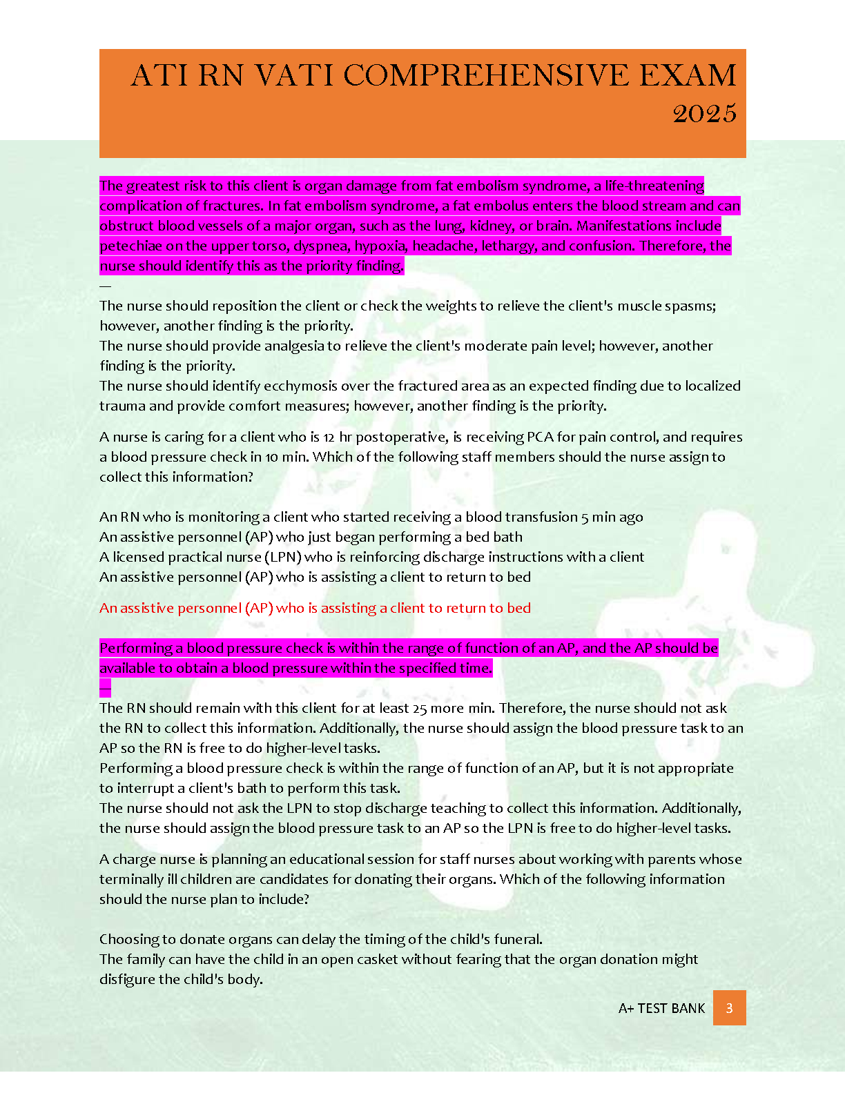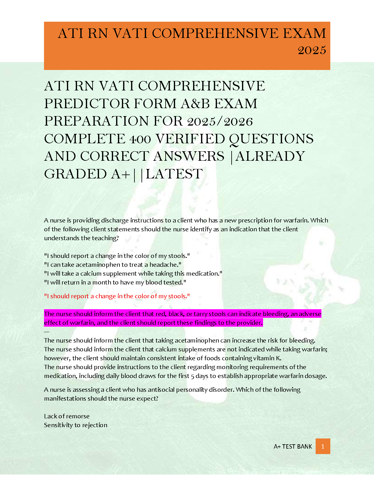 Prepare for your ATI RN VATI Comprehensive Predictor Form A&B exam with this latest 2025/2026 edition. This resource provides complete verified questions and correct answers, graded A+, to help students pass their exams on the first attempt and avoid resits. It's designed to enhance understanding and build confidence for success.
