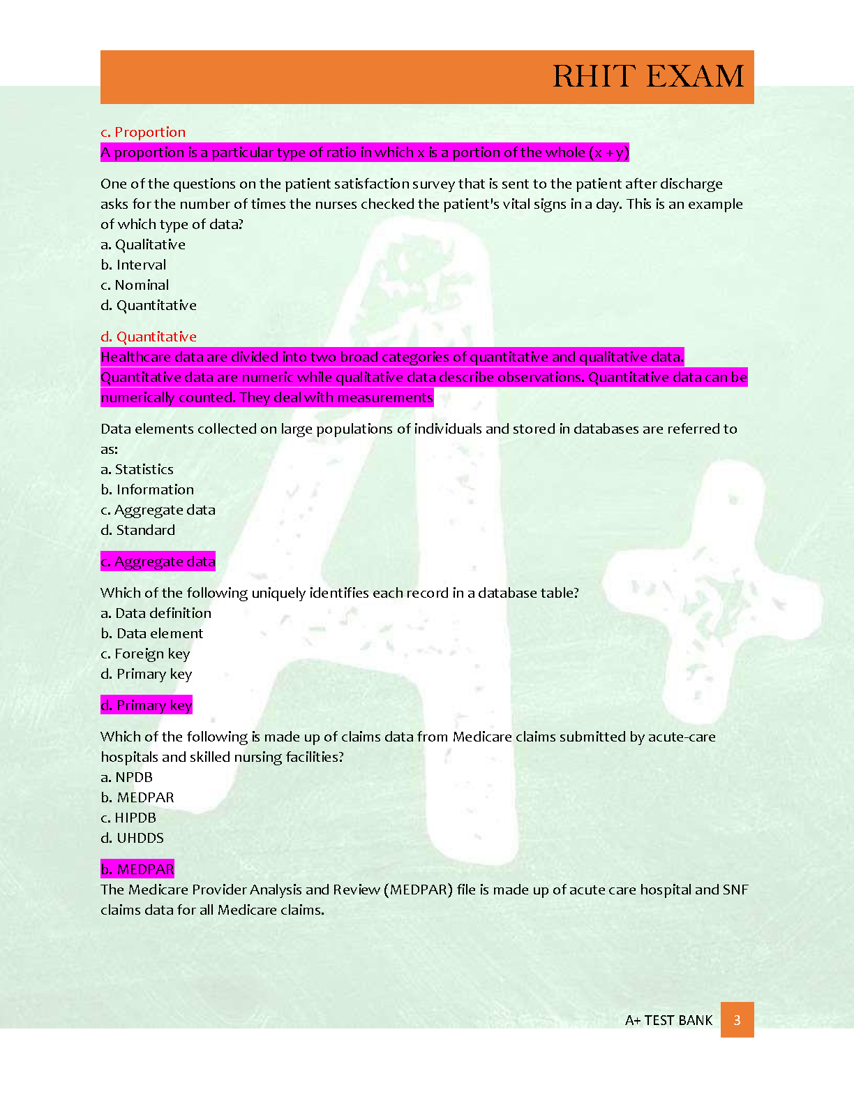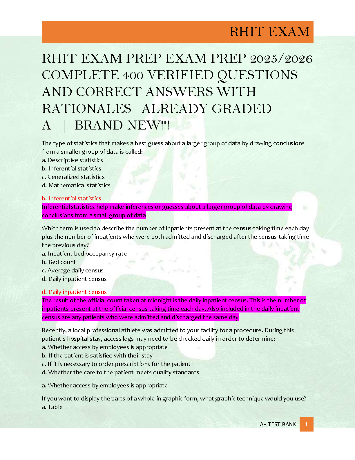RHIT Exam Prep Test Bank 2025/2026: 400+ A+ Graded Questions with Verified Answers & Detailed Rationales for First-Attempt Pass
