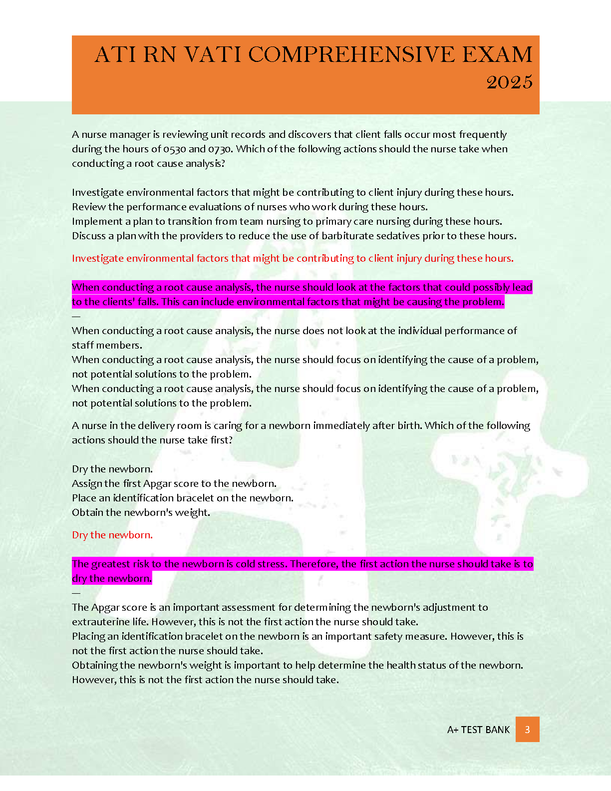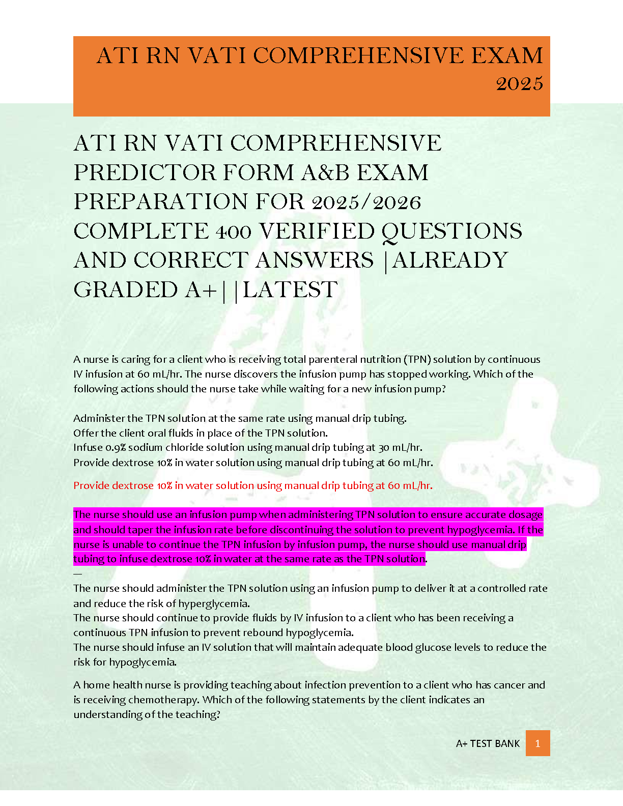 Ace your ATI RN Vati Comprehensive Predictor exam on the first attempt! This meticulously crafted study guide features 400 fully verified questions and correct answers, ensuring you're thoroughly prepared for the 2025/2026 academic year. Avoid resits with this essential resource, designed to help you achieve a Graded A+.