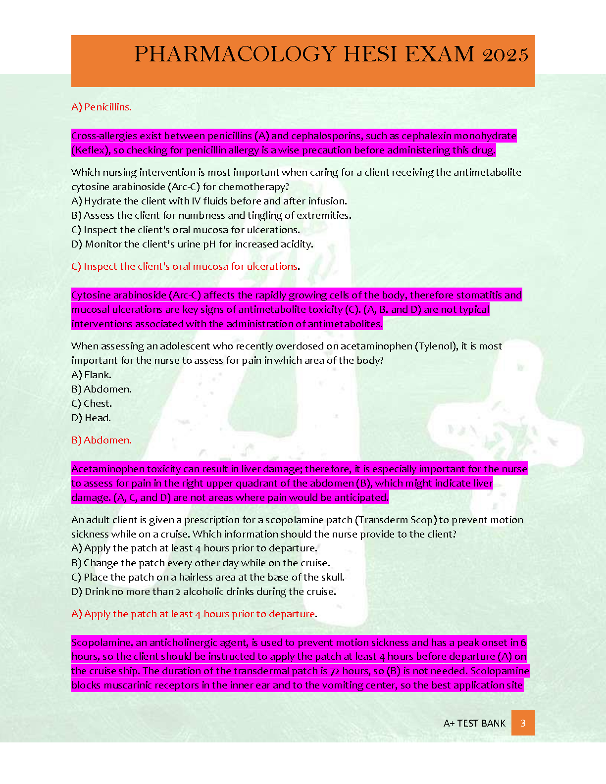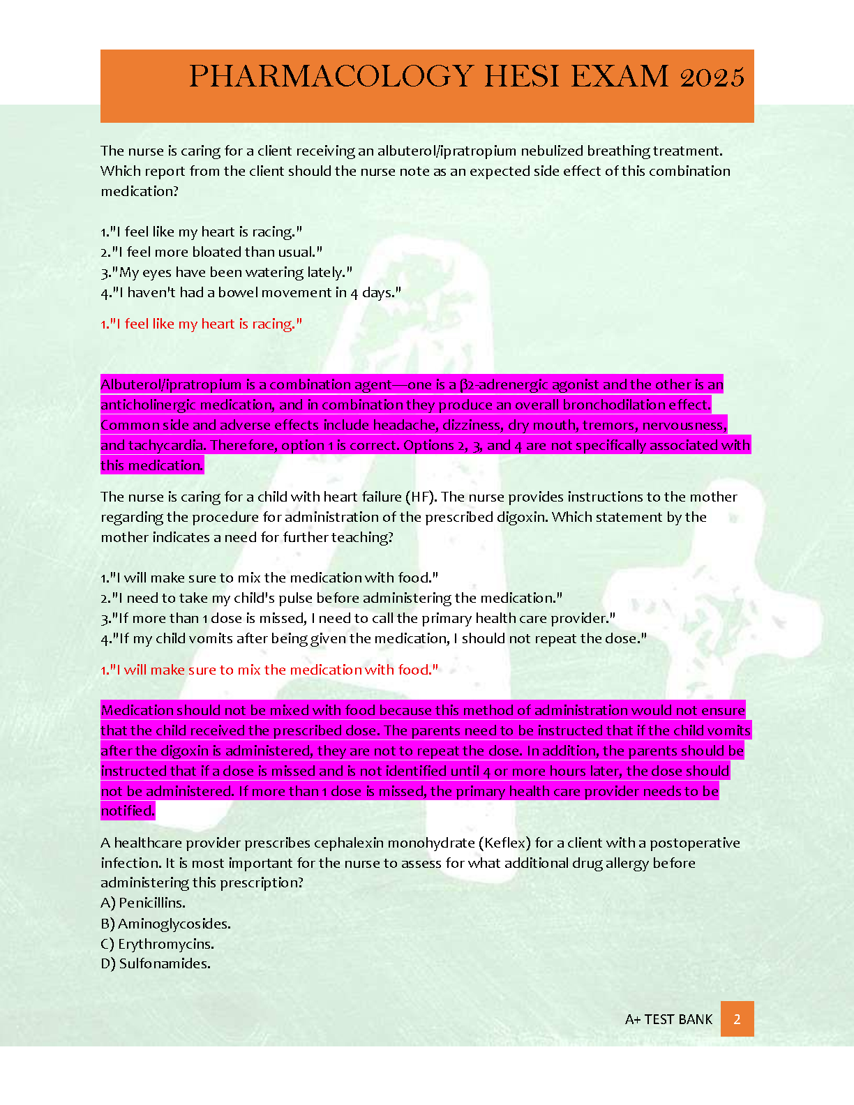HESI Pharmacology Exam 2025/2026: Verified Questions with Detailed Rationales by A+ TEST BANK
