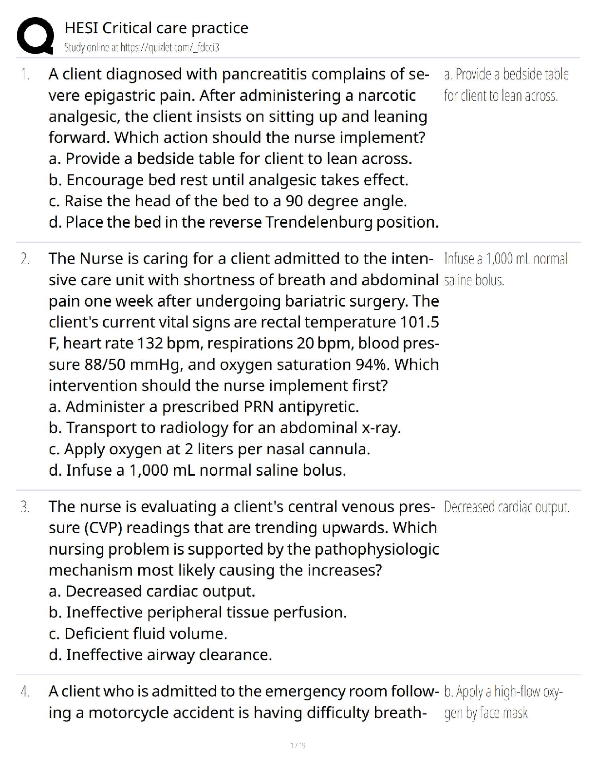 HESI Critical Care Practice Questions & Answers: Essential Review for the 2025/2026 Academic Year