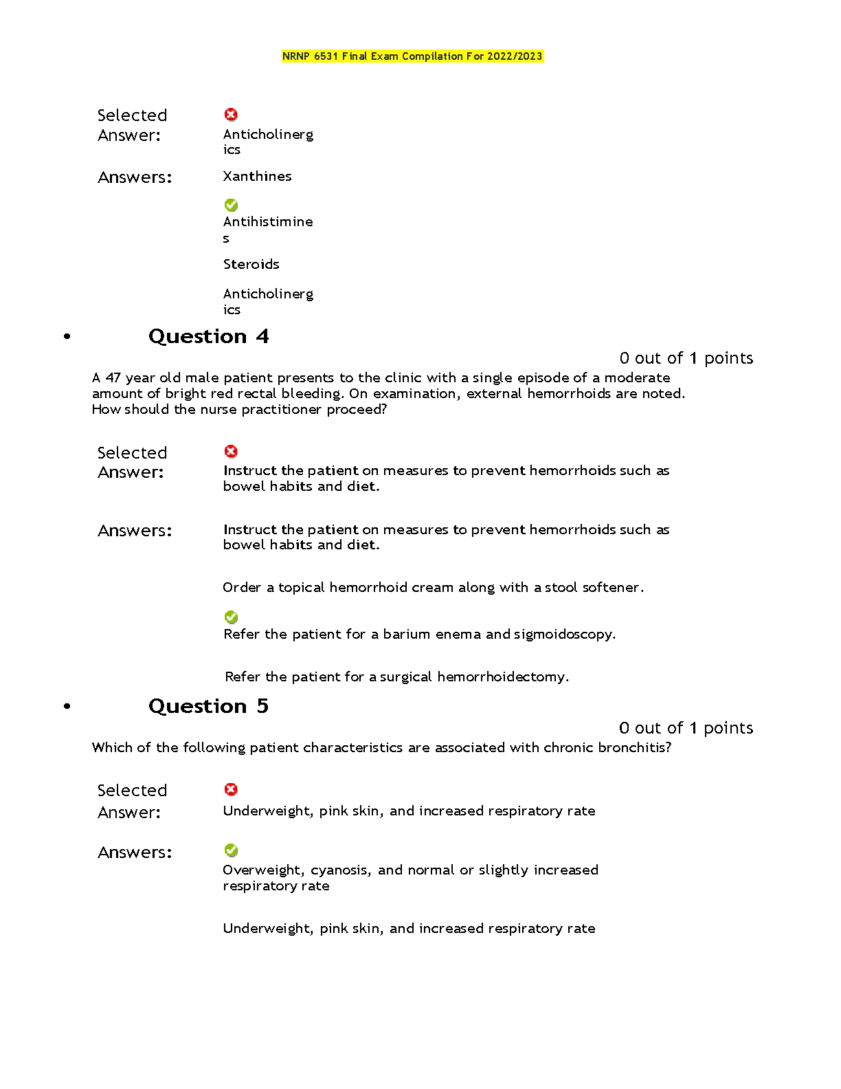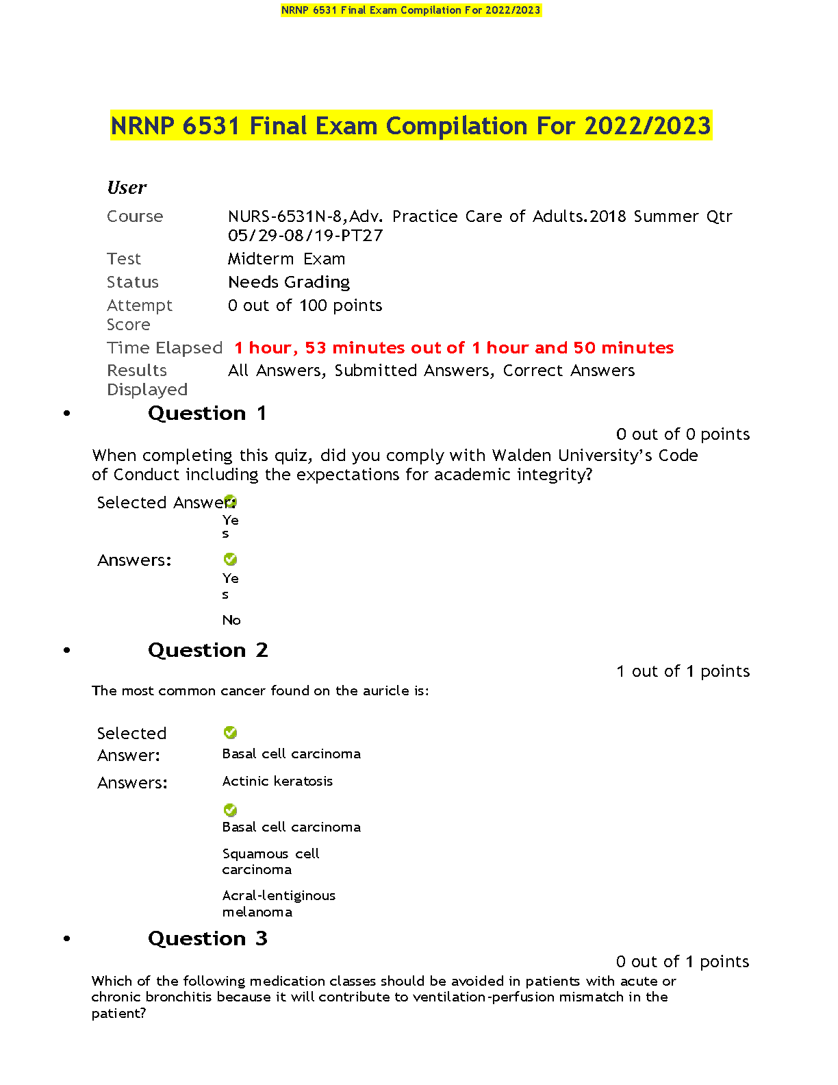Master the NRNP 6531 Final Exam with this comprehensive compilation for the 2022/2023 academic year. This resource includes midterm exam questions and answers, designed to help students achieve first-attempt success and avoid resits. Focus on advanced practice care of adults with detailed explanations and practice questions.