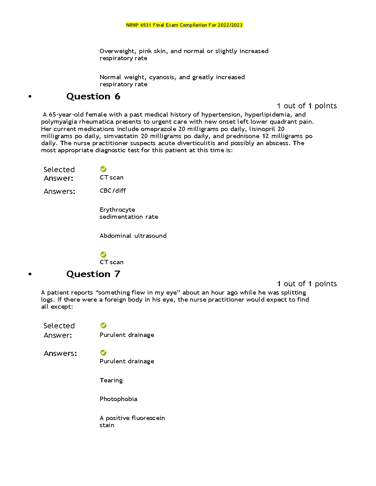 NRNP 6531 Final Exam Compilation for 2022/2023: Advanced Practice Care of Adults with Authors