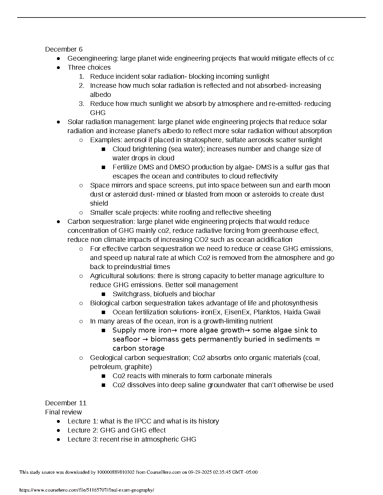 Unlock your full potential for the 2025/2026 academic year with this comprehensive Geography Final Exam Study Guide. Delve into critical topics like advanced geoengineering strategies (solar radiation management, biological, and geological carbon sequestration methods), the history and pivotal role of the IPCC, and an in-depth analysis of Greenhouse Gases (GHG) and their environmental impacts. This essential resource is meticulously crafted to ensure you develop a deep understanding of complex environmental and geographical concepts, helping you to ace your exams on your first attempt and confidently avoid costly resits.