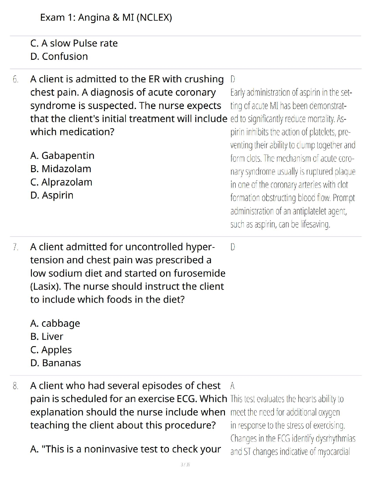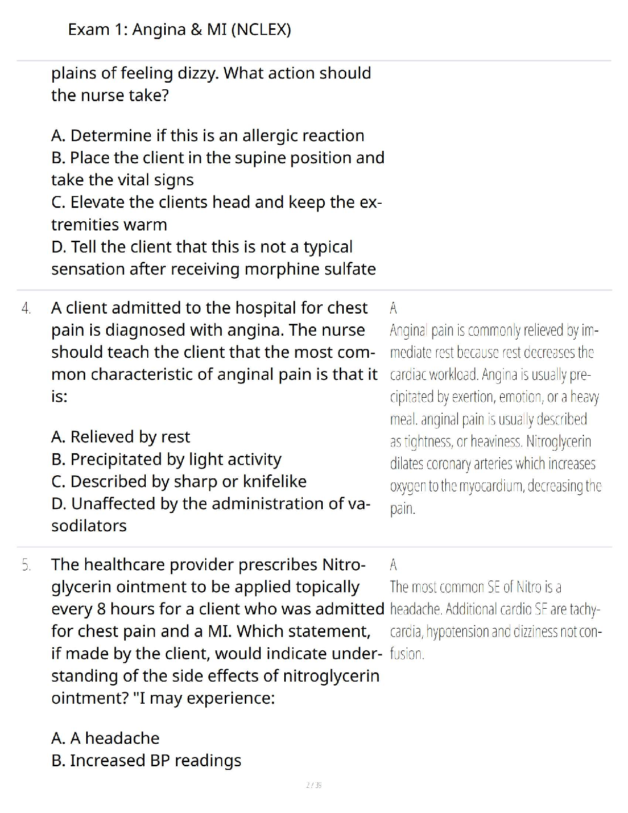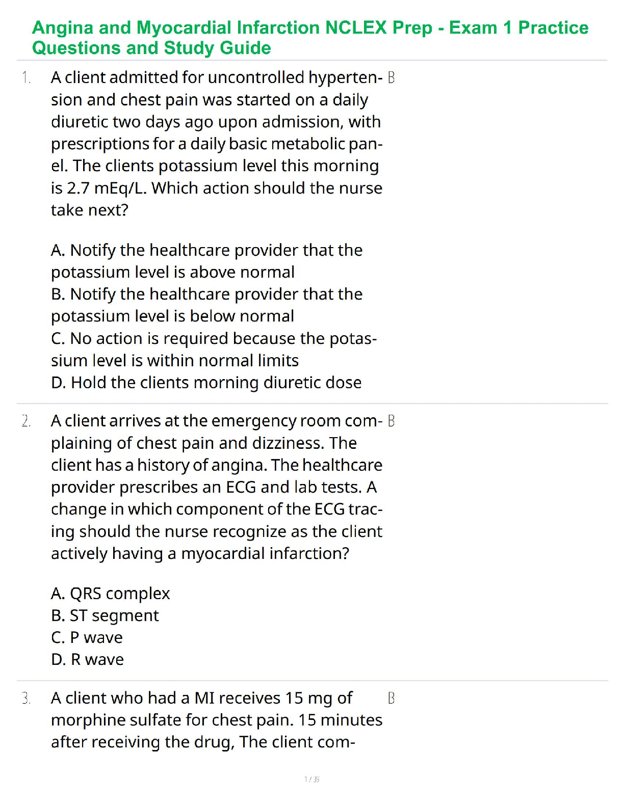 Master Angina and Myocardial Infarction for the NCLEX: Exam 1 Practice Questions and Study Guide by [Authors' Names]