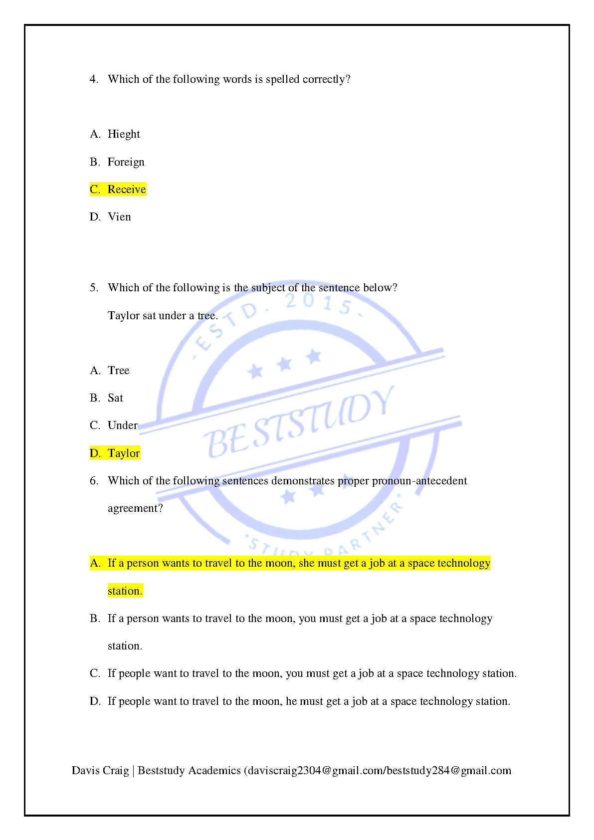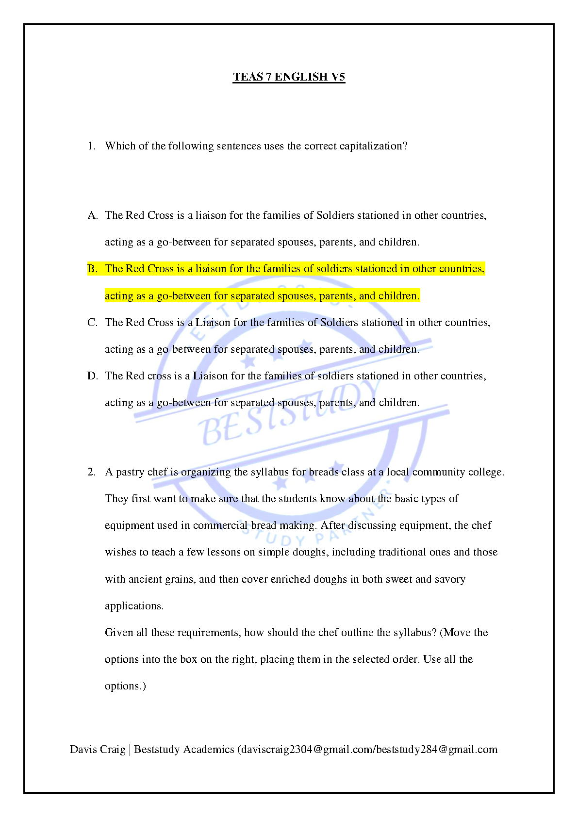 TEAS 7 English V5 Practice Questions and Answers | Davis Craig & Beststudy Academics
