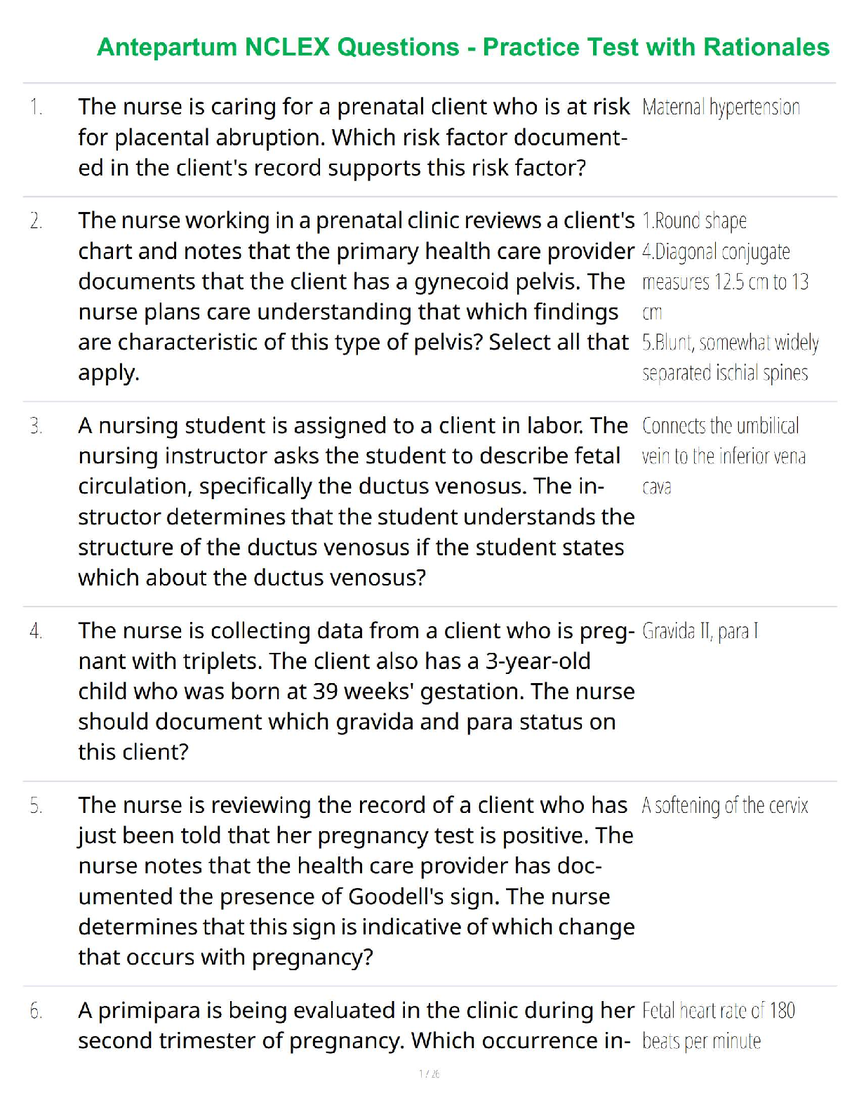 Antepartum NCLEX Practice Questions & Rationales for the 2025/2026 Academic Year - Master Your Exams and Avoid Resits