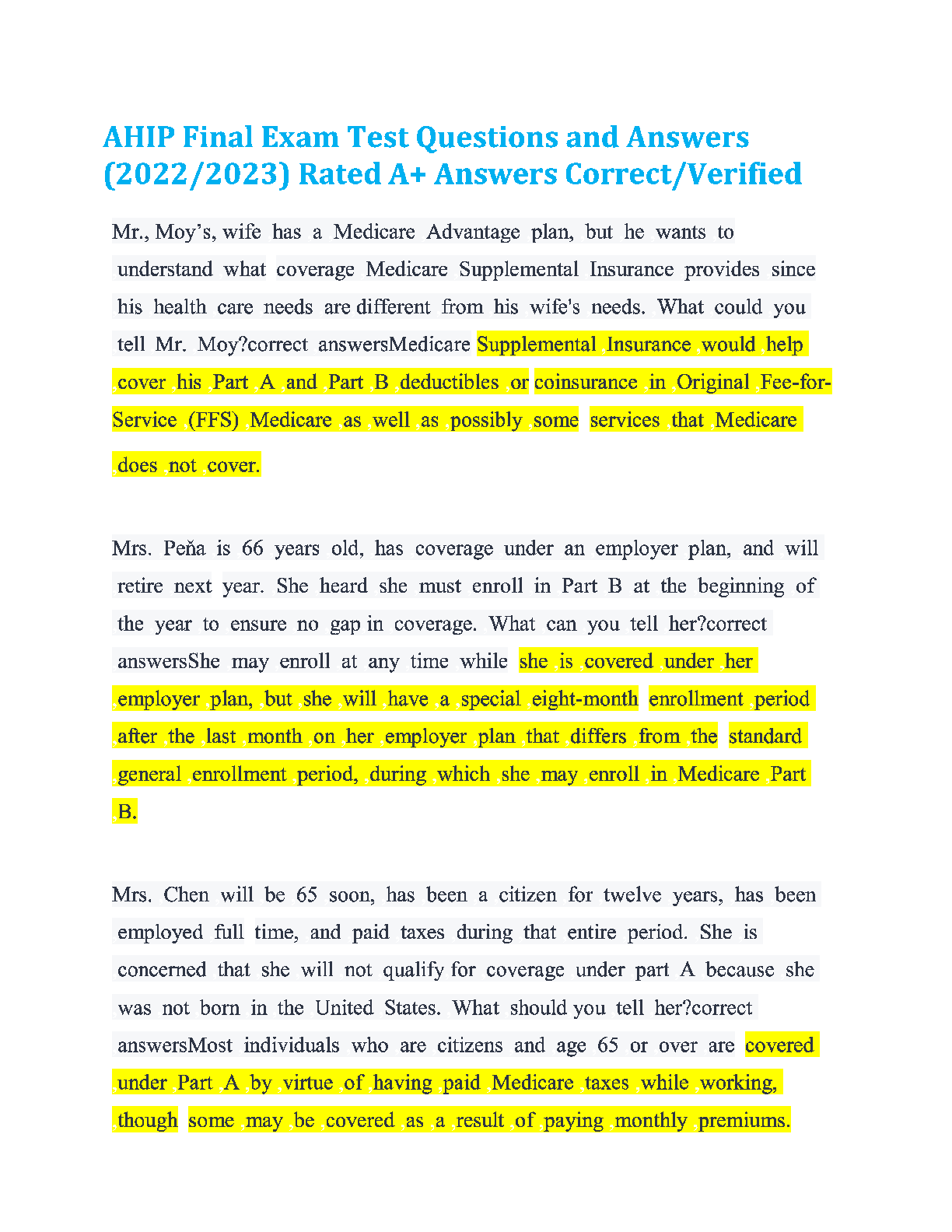 AHIP Final Exam Test Bank 2022/2023 – A+ Rated, Verified Questions & Answers for First Attempt Pass
