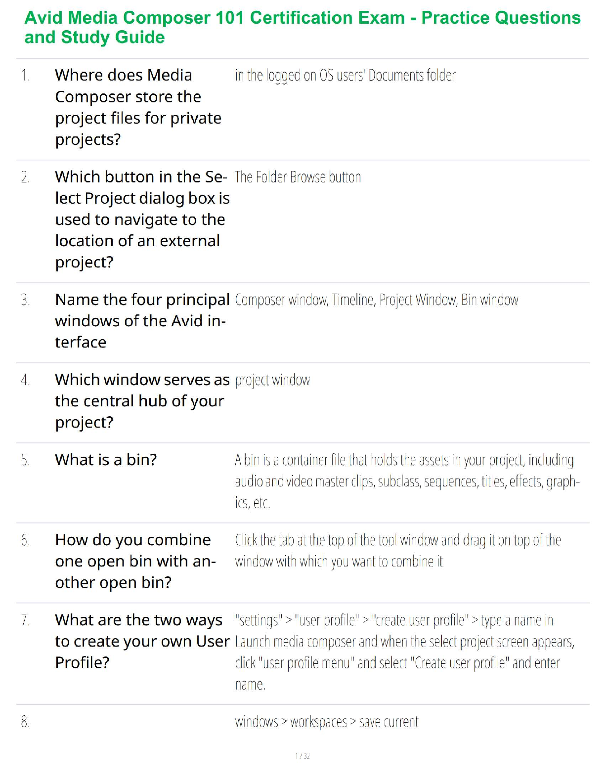 Avid Media Composer 101 Certification Exam Prep: Essential Questions & Answers for the 2025/2026 Academic Year