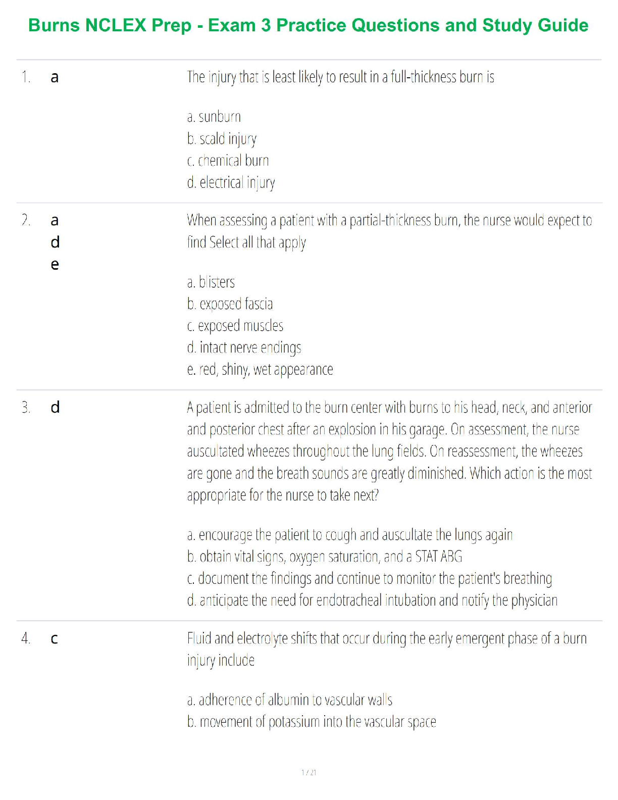 Unlock your full potential for the NCLEX-RN exam with this indispensable Burns Management Practice Questions & Study Guide, tailored for the 2025/2026 academic year. Featuring expertly crafted multiple-choice questions on burn injury assessment, treatment, and critical nursing interventions, this resource is your key to mastering a challenging topic. Prepare effectively to pass your NCLEX-RN licensure exam on your very first attempt, boosting your confidence and avoiding unnecessary resits. Ideal for nursing students seeking comprehensive review and exam-focused practice for core NCLEX content.
