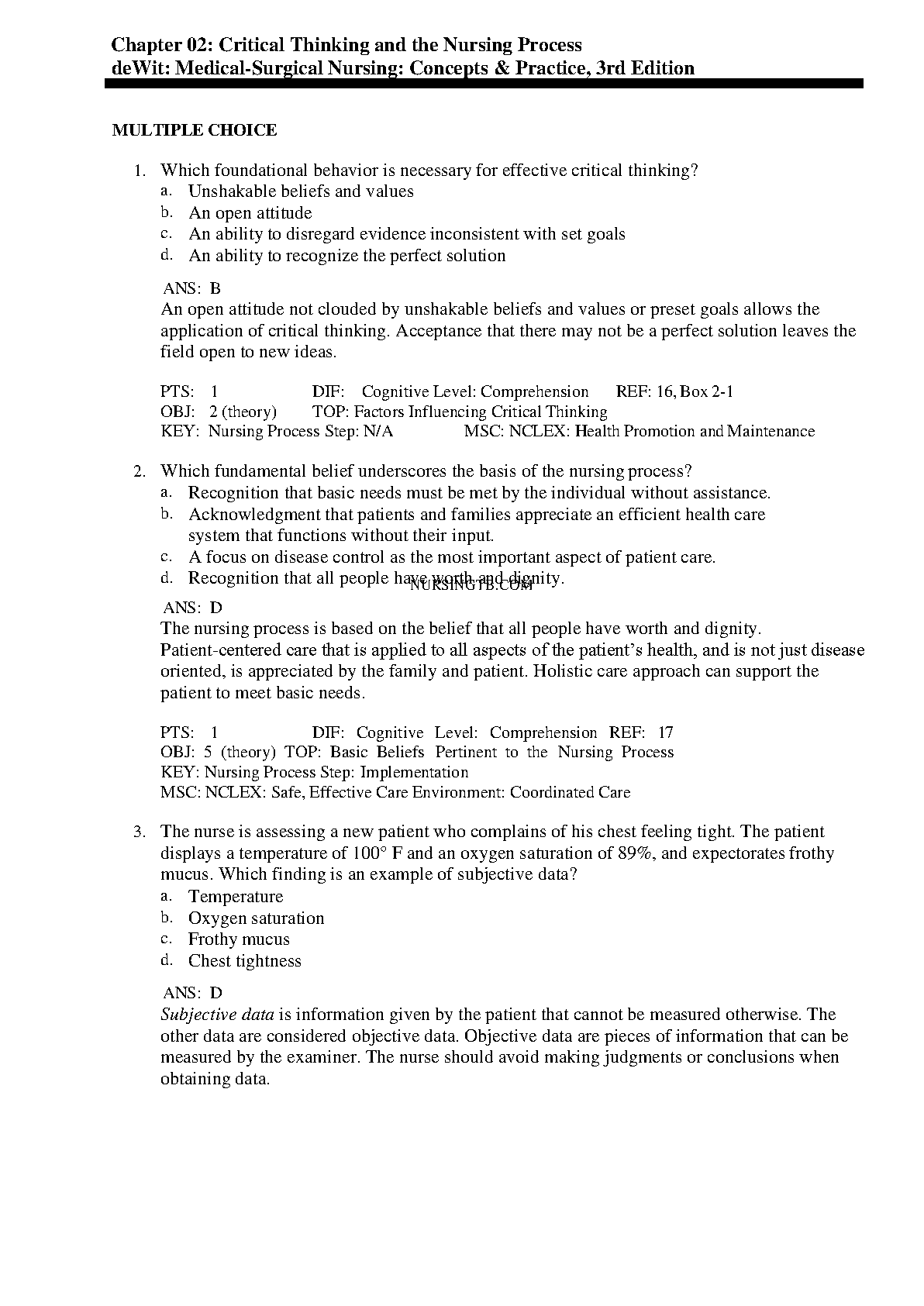 Test Bank for Medical-Surgical Nursing: Concepts and Practice, 3rd Edition by Susan C. deWit