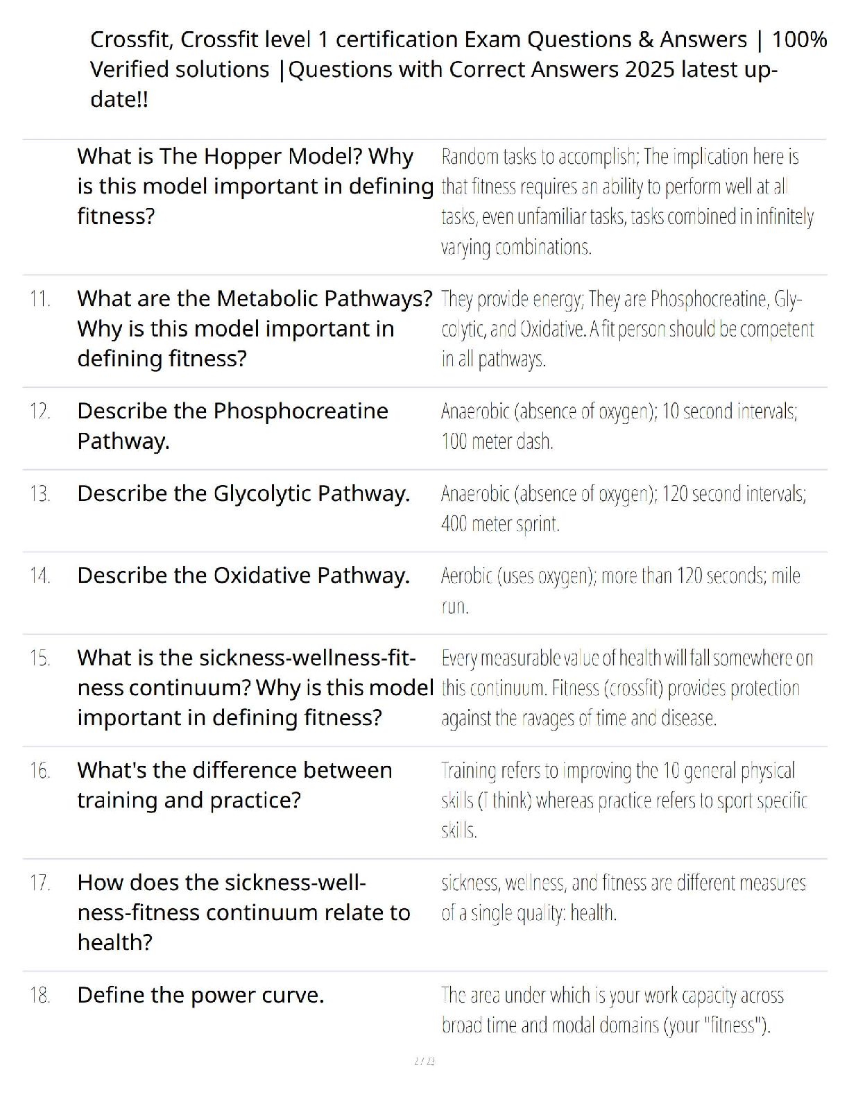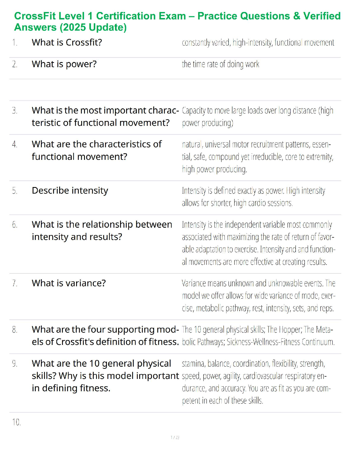CrossFit Level 1 Certification Exam 2025/2026: Ultimate Practice Questions & Verified Answers for a First-Attempt Pass and Resit Avoidance