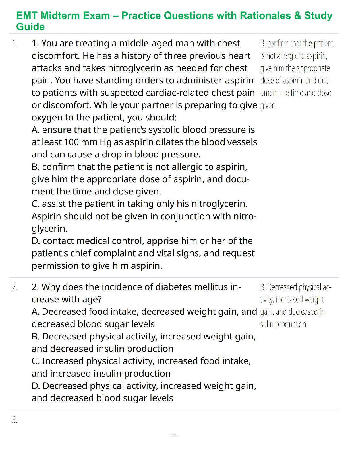 EMT Midterm Exam Mastery: Comprehensive Practice Questions with Detailed Rationales & Study Guide