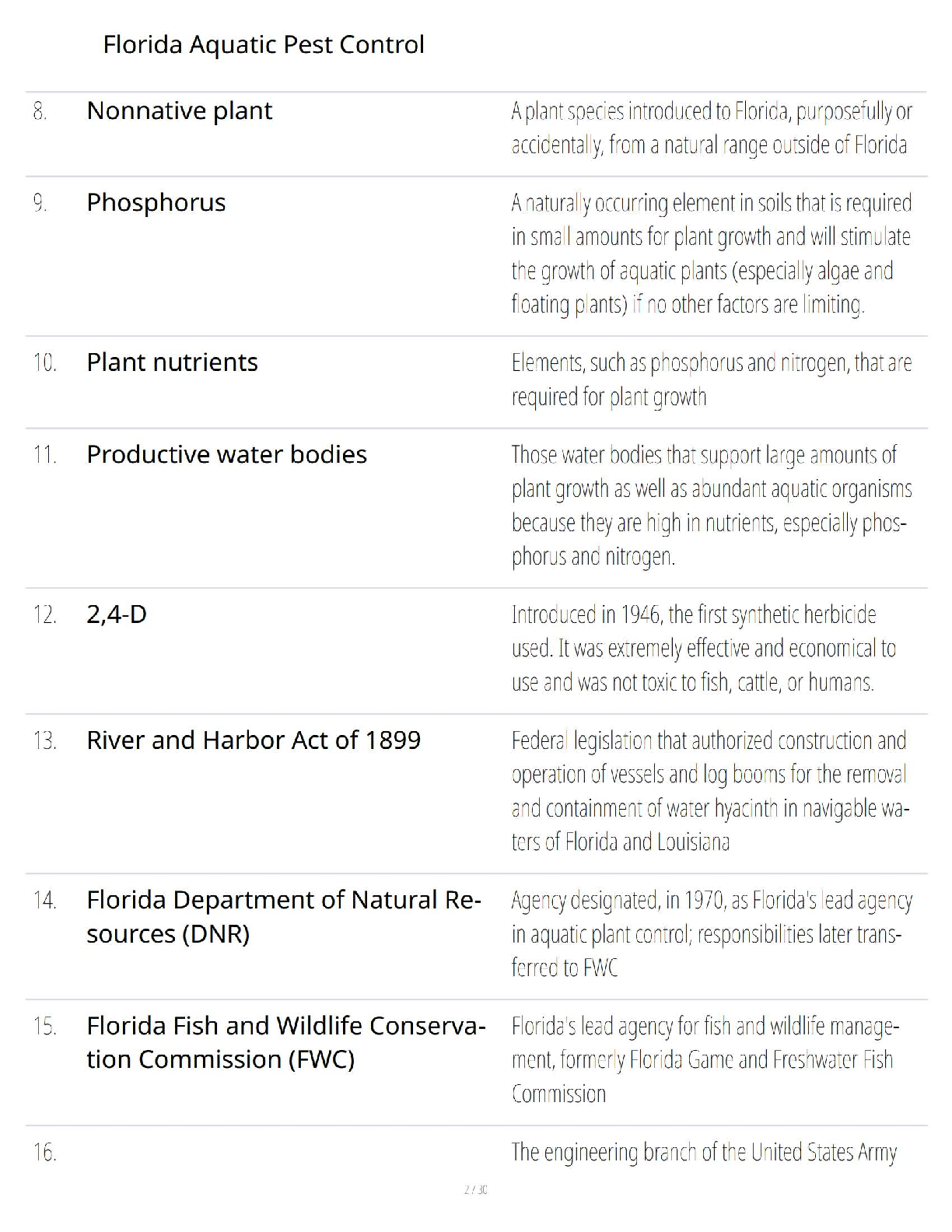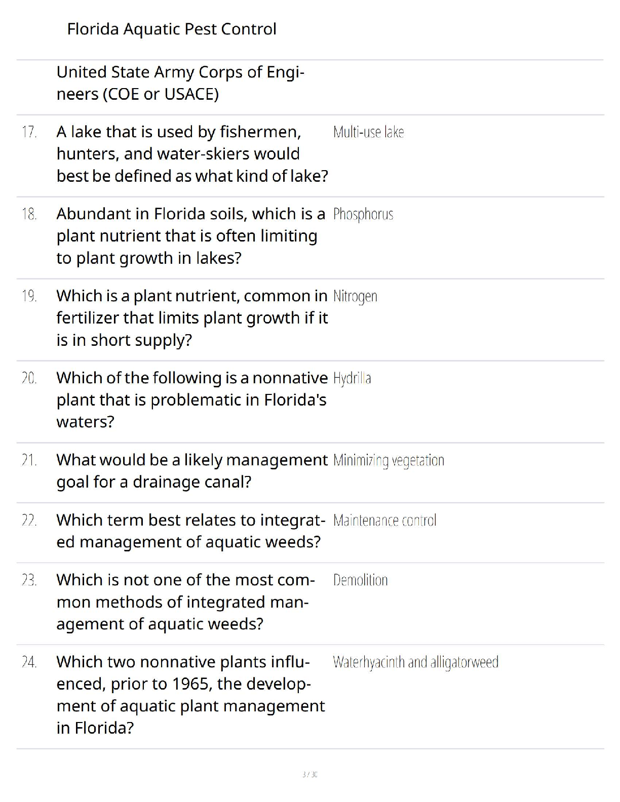Master the Florida Aquatic Pest Control Exam with this comprehensive study guide and practice questions. Designed for the latest edition and authored by renowned experts K. A. Langeland, R. M. Nettles, B. L. Bunting, G. E. MacDonald, and S. M. Steed, this invaluable resource provides essential definitions, key concepts, and practical insights into integrated pest management (IPM), host specificity, and aquatic plant control. Equip yourself with the knowledge to confidently pass your exam on the first attempt and excel in aquatic pest management practices specific to Florida.