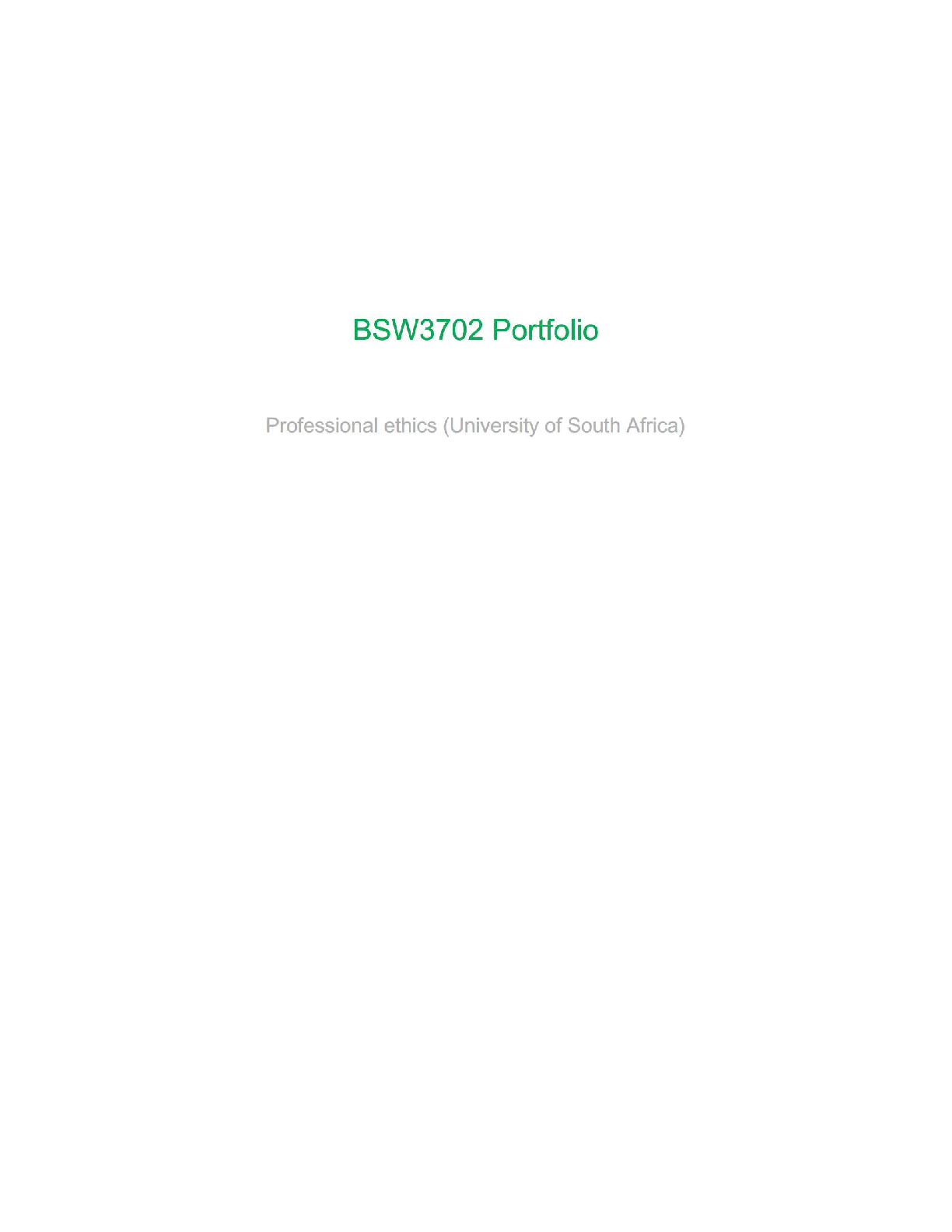 BSW3702 Professional Ethics Portfolio (University of South Africa) - 2025/2026 Exam Success Guide to Pass First Attempt & Avoid Resits