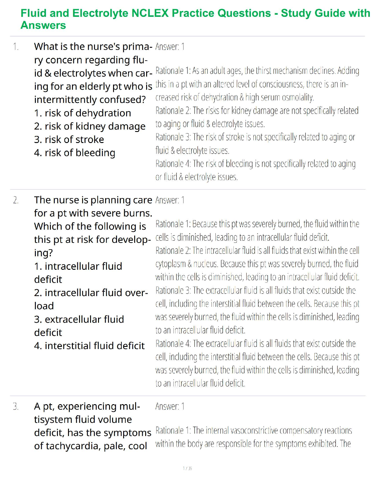 Prepare confidently for your NCLEX-RN exam with this comprehensive Fluid and Electrolyte Balance study guide, meticulously updated for the 2025/2026 academic year. Featuring an extensive collection of NCLEX-style practice questions, each accompanied by detailed answers and in-depth rationales, this resource is designed to solidify your understanding of crucial fluid and electrolyte concepts. Master essential nursing care related to imbalances, burns, and multisystem deficits, ensuring you pass your licensure examination on your first attempt and avoid costly resits. This guide is your ultimate tool for achieving NCLEX success by enhancing critical thinking and clinical application skills.
