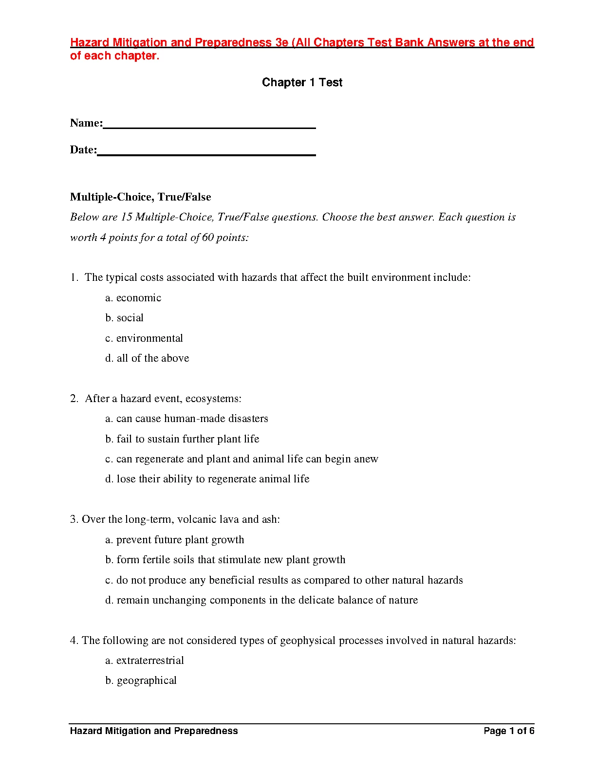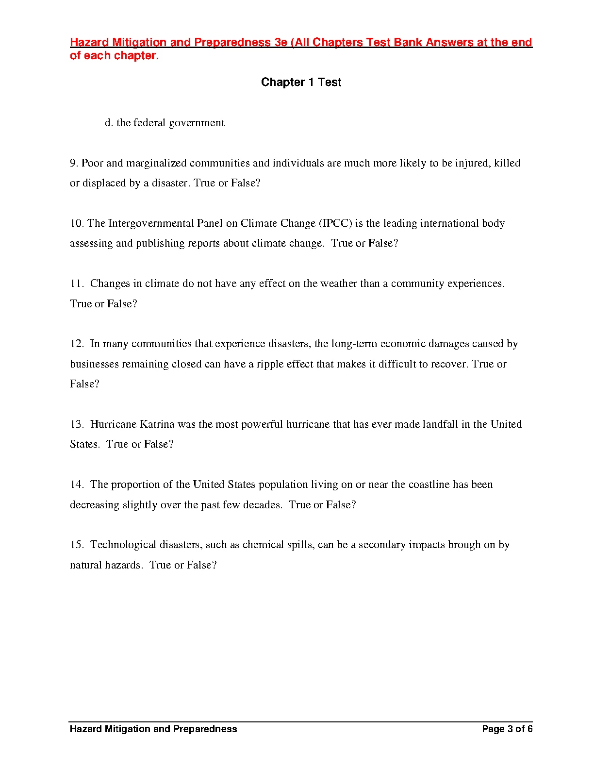 Hazard Mitigation and Preparedness 3RD EDITION BY Dylan Sandler Anna Schwab (All Chapters Test Bank Answers at the end of each chapter.