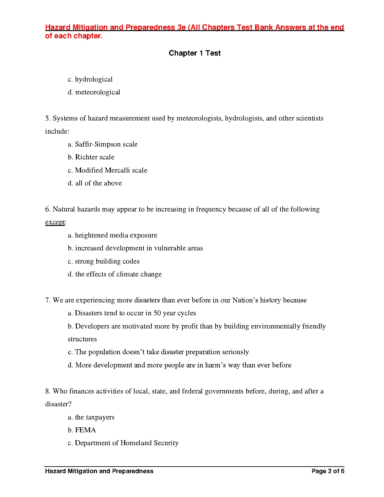 Hazard Mitigation and Preparedness 3RD EDITION BY Dylan Sandler Anna Schwab (All Chapters Test Bank Answers at the end of each chapter.. DOWNLOAD on www.hackedexams.com INSTANTLY.