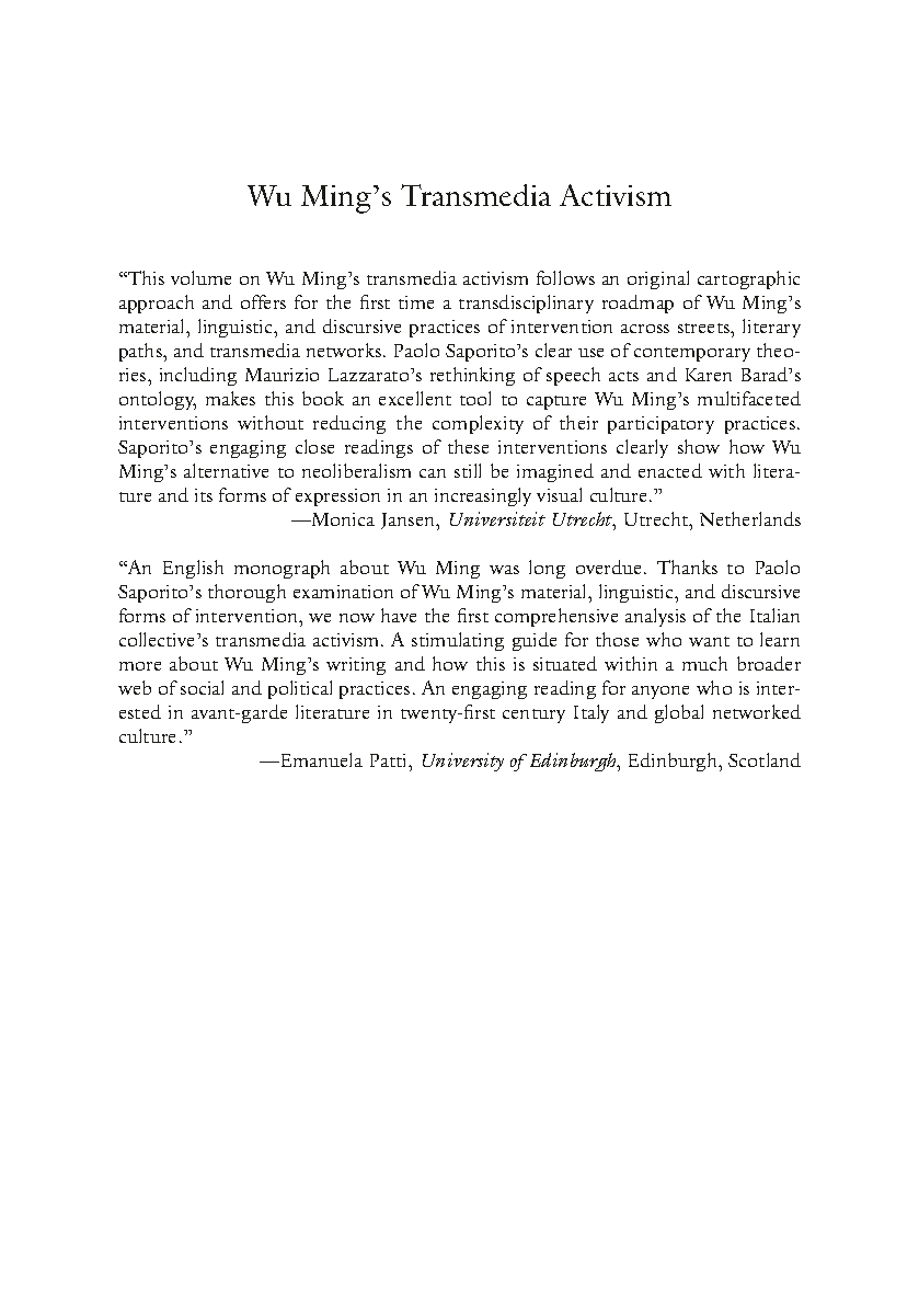 Wu Ming's Transmedia Activism: Ethical and Political Challenges to Neoliberalism by Paolo Saporito