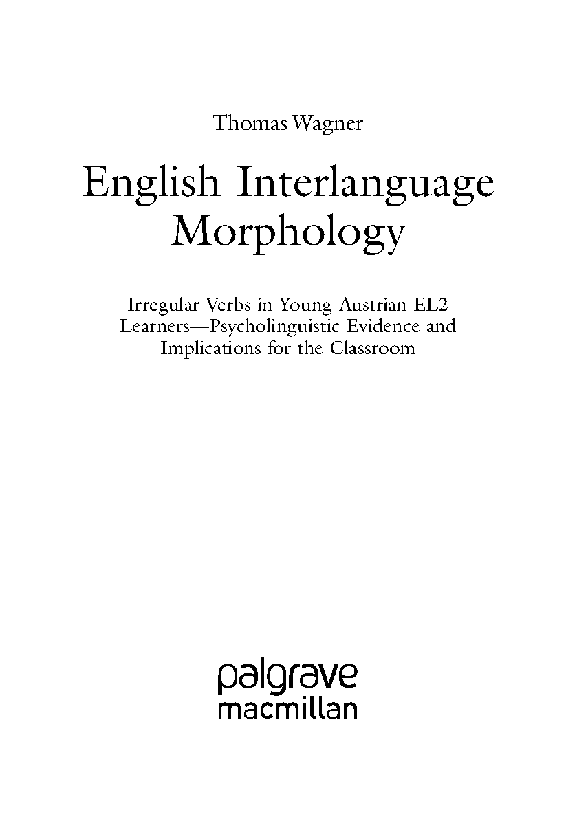 English Interlanguage Morphology: Irregular Verbs in Young Austrian EL2 Learners - Psycholinguistic Evidence and Implications for the Classroom by Thomas Wagner (Palgrave Pivot)