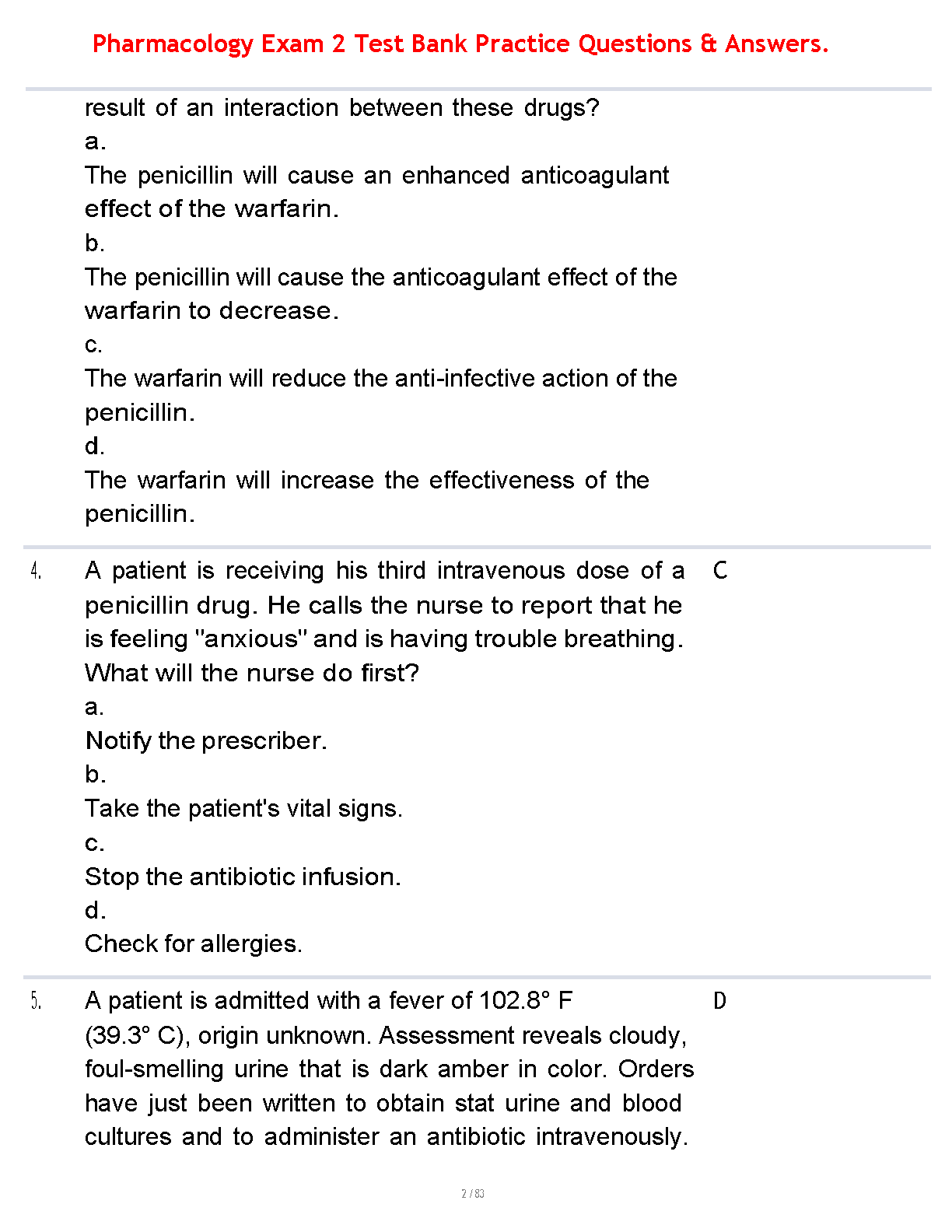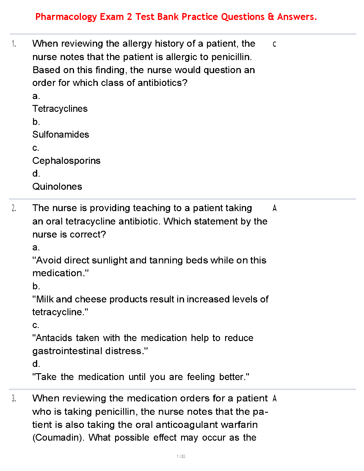 Elevate your understanding and secure top grades with this comprehensive Pharmacology Exam 2 Test Bank, meticulously curated for students using 'Pharmacology for Nursing Care, 10th Edition' by Richard A. Lehne, Laura Lacey, and Jacqueline Rosenjack. This indispensable resource features an extensive collection of practice questions covering vital pharmacological concepts, including antibiotic classifications, drug interactions (e.g., warfarin, tetracyclines), and patient medication education. Master challenging topics and confidently prepare to pass your exams on the very first attempt, avoiding the need for costly resits.