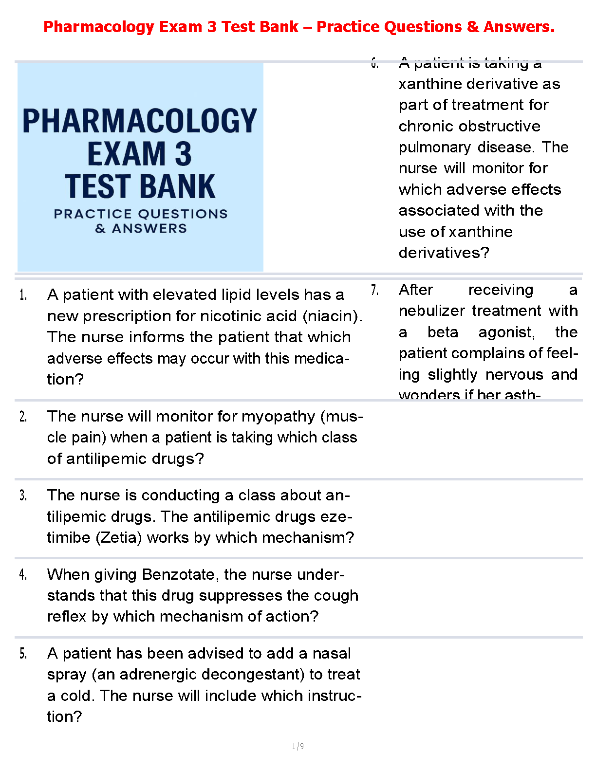 Pharmacology Exam 3 Test Bank: Practice Questions & Answers for the 2025/2026 Academic Year