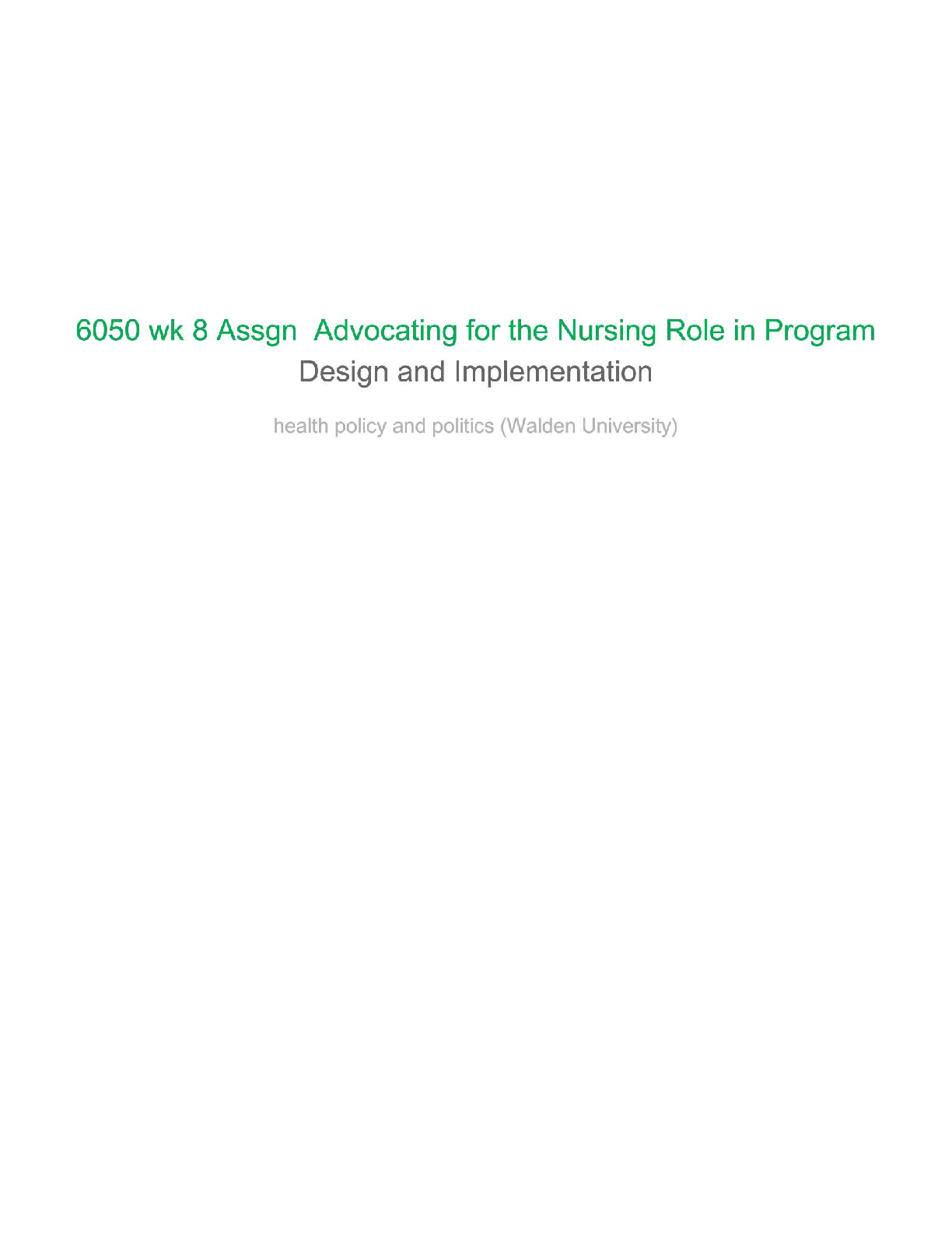Secure your academic success in Walden University's DNP 6050 Health Policy & Advocacy course with this expertly crafted guide for the Week 8 'Advocating for the Nursing Role in Program Design and Implementation' assignment. Leveraging critical insights from 'Policy & Politics in Nursing and Health Care, 9th Edition' by Diana J. Mason, Elizabeth Dickson, and Mary G. Leavitt, this resource provides a structured approach to understanding health policy, political processes, and the pivotal role of nursing in program development. Tailored for the 2025/2026 academic year, this guide ensures you comprehend complex topics, excel in your coursework, and pass your exams on the very first attempt, effectively avoiding costly resits.