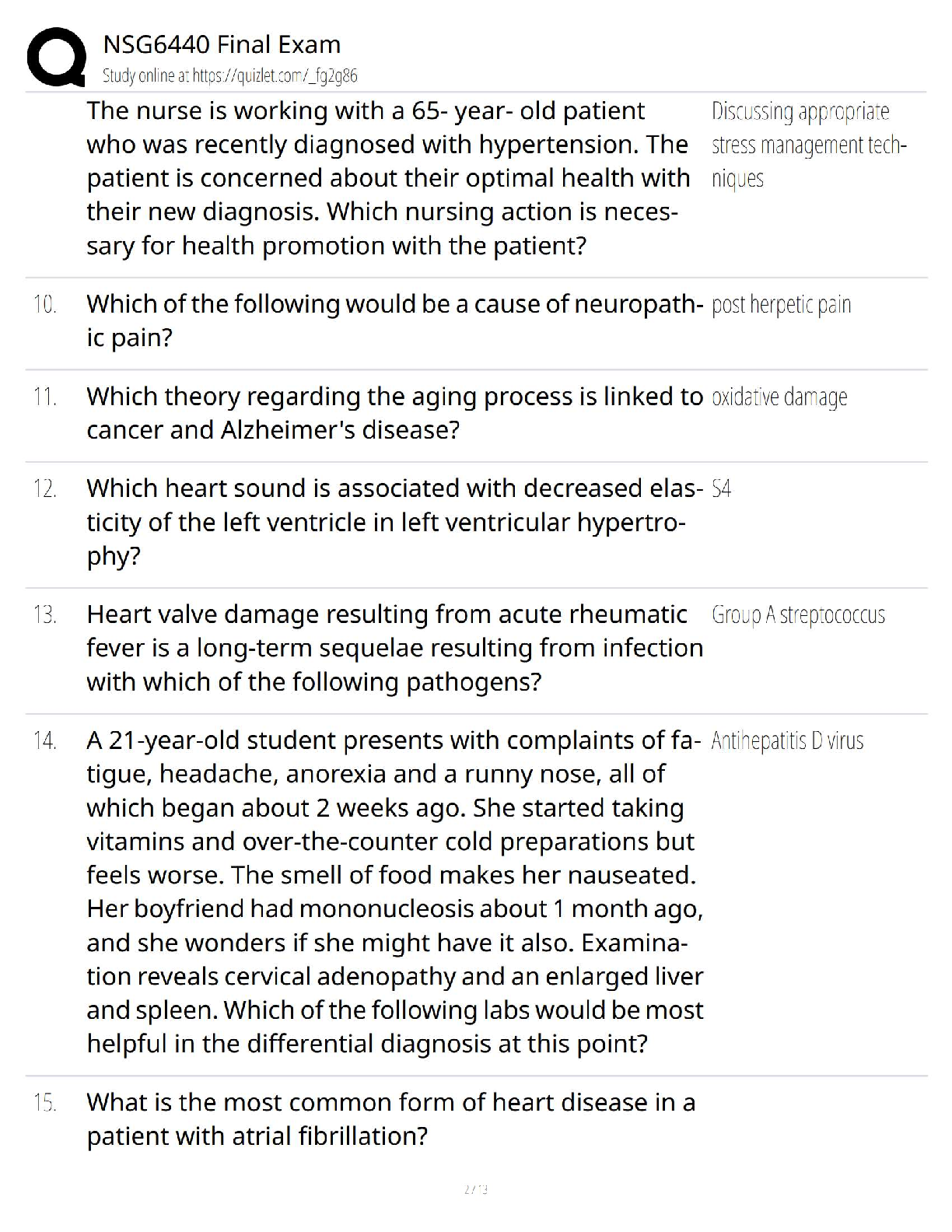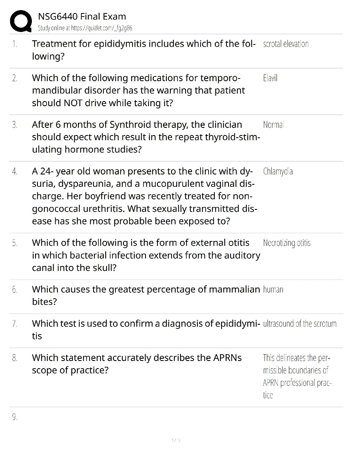 Master the NSG6440 Final Exam with this comprehensive review resource, designed for the 2025/2026 academic year. Featuring practice questions and key concepts, this guide is crafted to help students achieve first-attempt success and avoid resits. Focus on core topics in advanced practice nursing and build the confidence needed to excel.