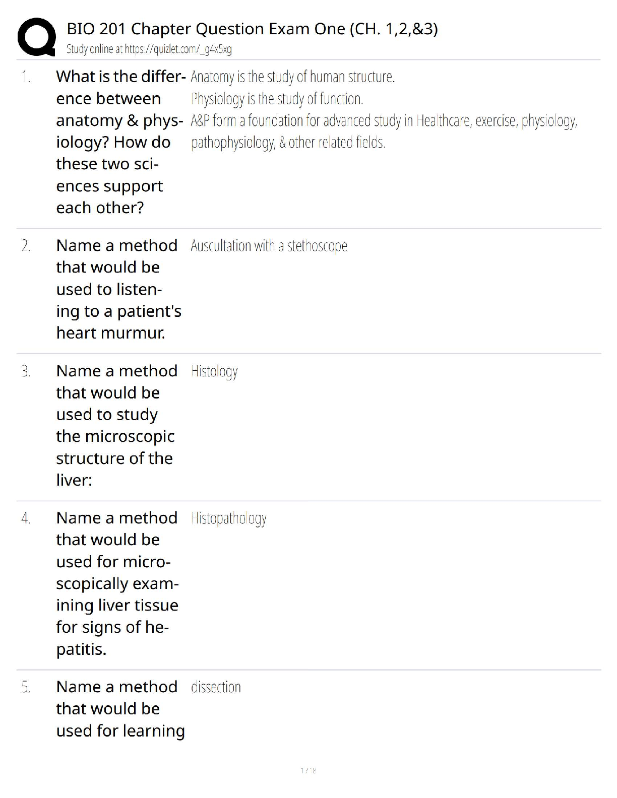 BIO 201 Anatomy & Physiology Chapters 1-3 Comprehensive Test Bank for 2025/2026 Exam Mastery: Ace Your First Attempt!