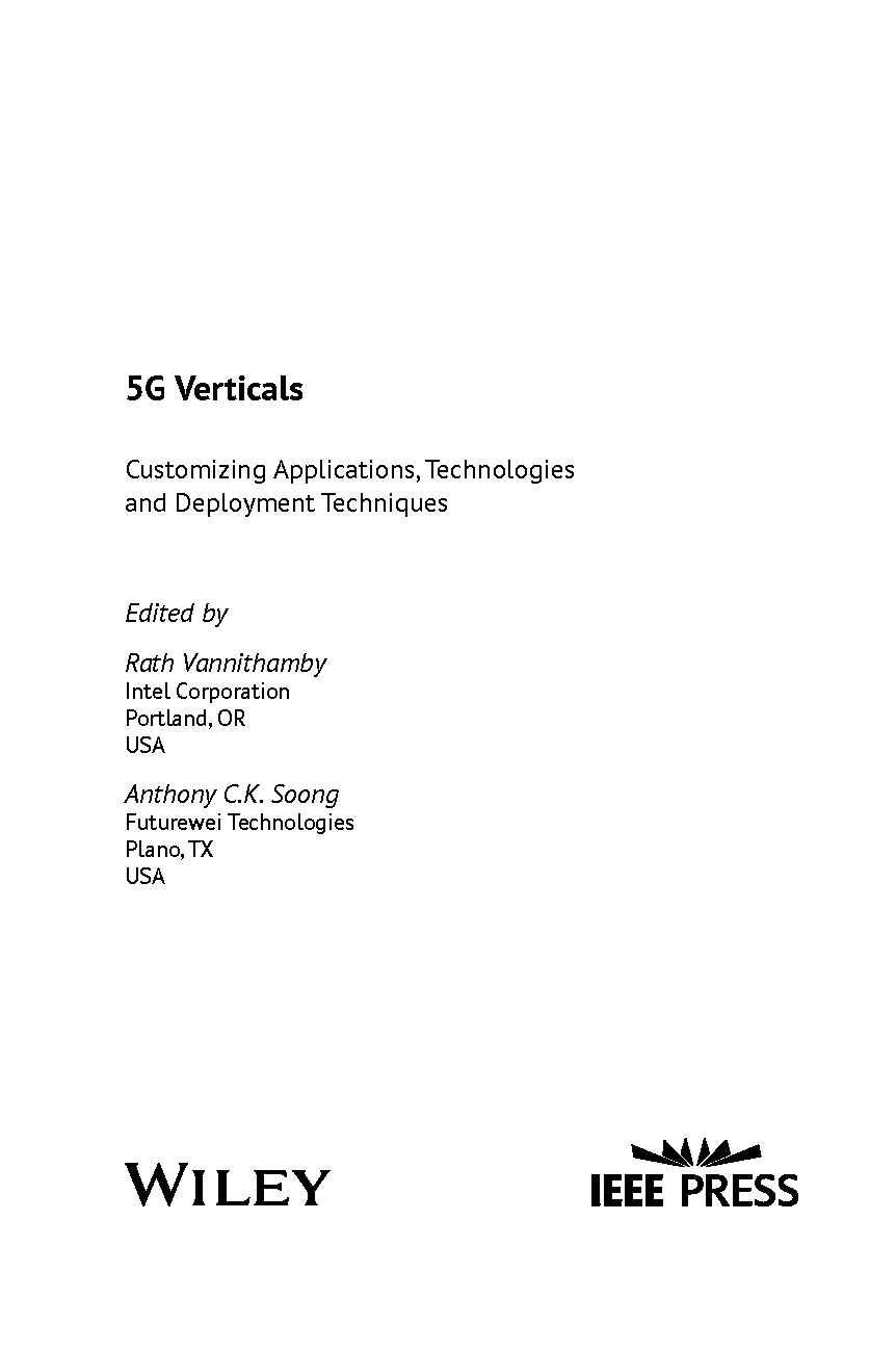 5G Verticals: Customizing Applications, Technologies, and Deployment Techniques by Rath Vannithamby & Anthony C.K. Soong (Edited by)