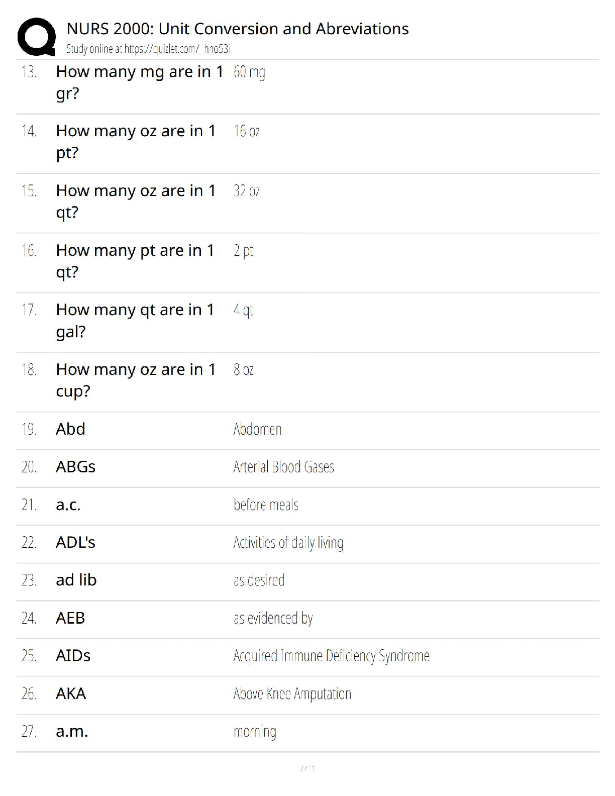 NURS 2000: Unit Conversion and Abbreviations (2025/2026 Academic Year) - Master Essential Nursing Calculations for First Attempt Exam Success