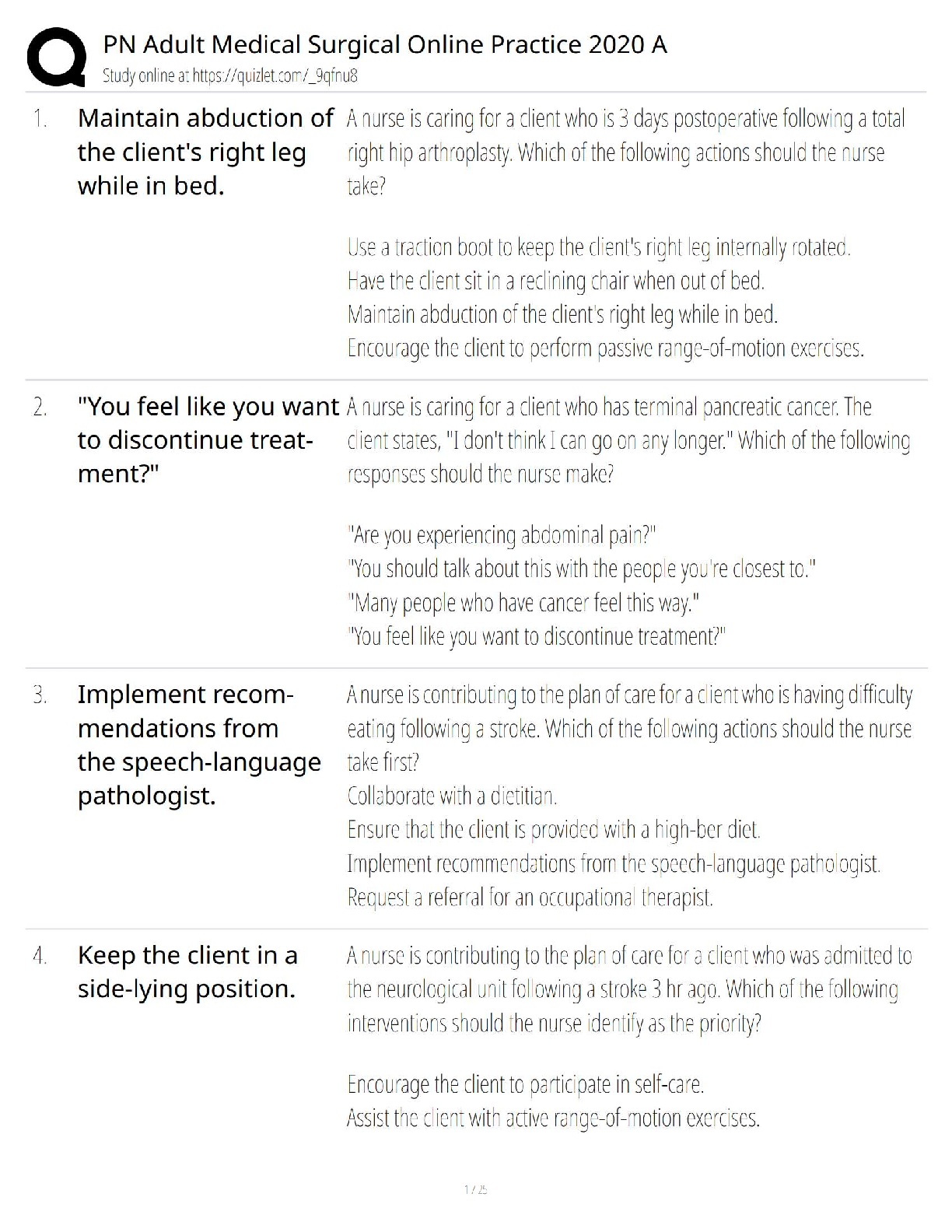 Master your Practical Nursing (PN) Adult Medical Surgical exams with this comprehensive 2020 A online practice resource, meticulously crafted for the 2025/2026 academic year. This essential study aid features expertly curated questions covering critical medical-surgical nursing concepts, designed to enhance your understanding, identify knowledge gaps, and build the confidence needed to pass on your first attempt. Prepare effectively, avoid resits, and secure your nursing success by mastering key topics and exam-style questions.