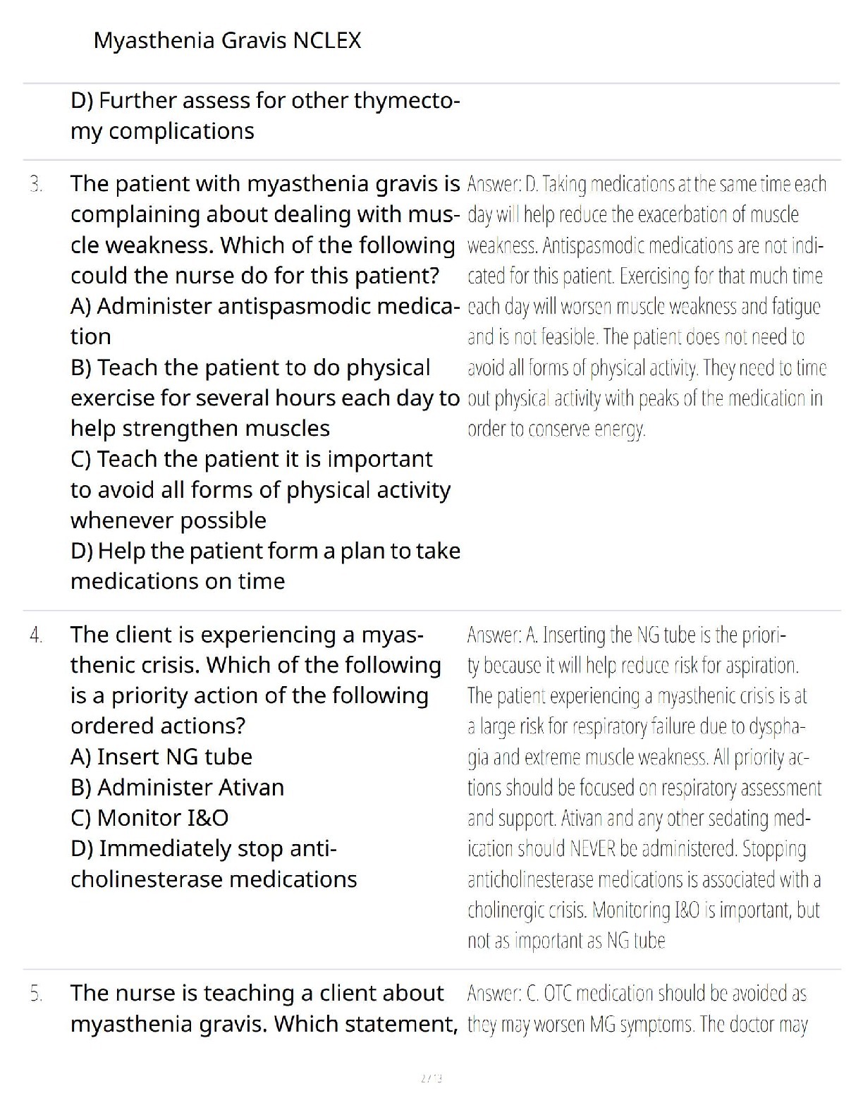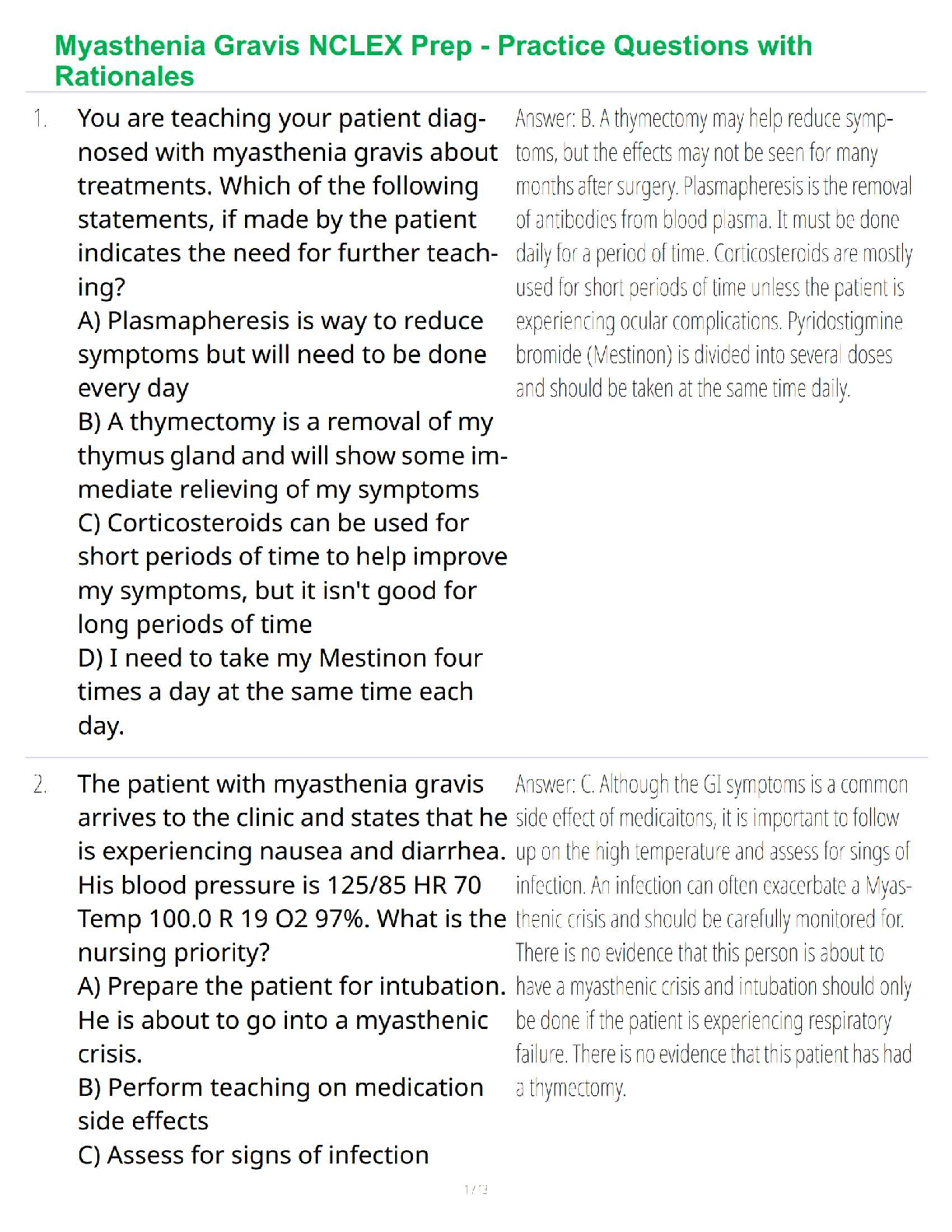 Master Myasthenia Gravis with our comprehensive NCLEX preparation resource. This guide provides essential practice questions and detailed rationales, designed to help students excel in their exams and avoid resits for the upcoming 2025/2026 academic year. Equip yourself with the knowledge to confidently pass your nursing assessments on the first attempt.