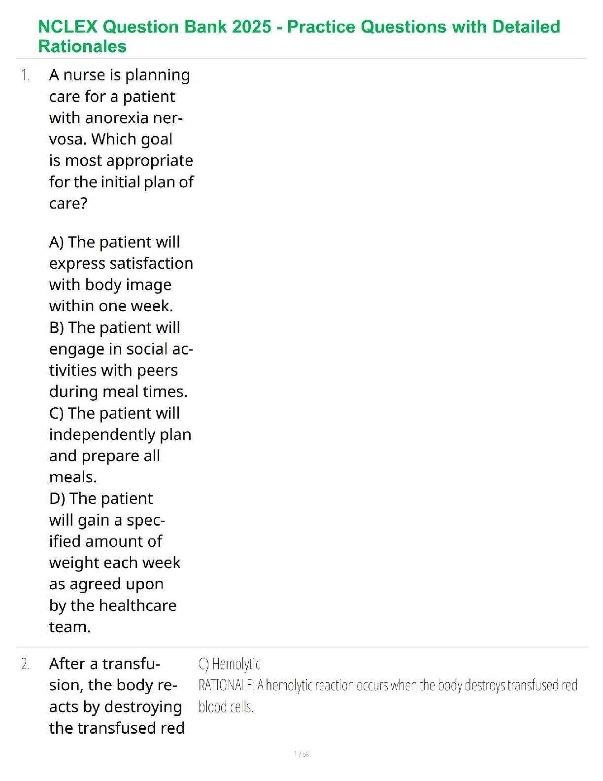 Unlock your full potential for the NCLEX exam with this extensive Question Bank, meticulously designed for the 2025/2026 academic year. This resource offers a vital collection of up-to-date practice questions, each accompanied by comprehensive, detailed rationales to deepen your understanding. Developed by leading nursing educators, it's crafted to equip aspiring nurses with the essential knowledge, critical thinking, and test-taking strategies needed to confidently pass the NCLEX on your very first attempt, thereby avoiding costly and stressful resits. Master key nursing concepts, enhance your problem-solving skills, and build unwavering confidence with hundreds of meticulously crafted questions mirroring the latest exam blueprint.