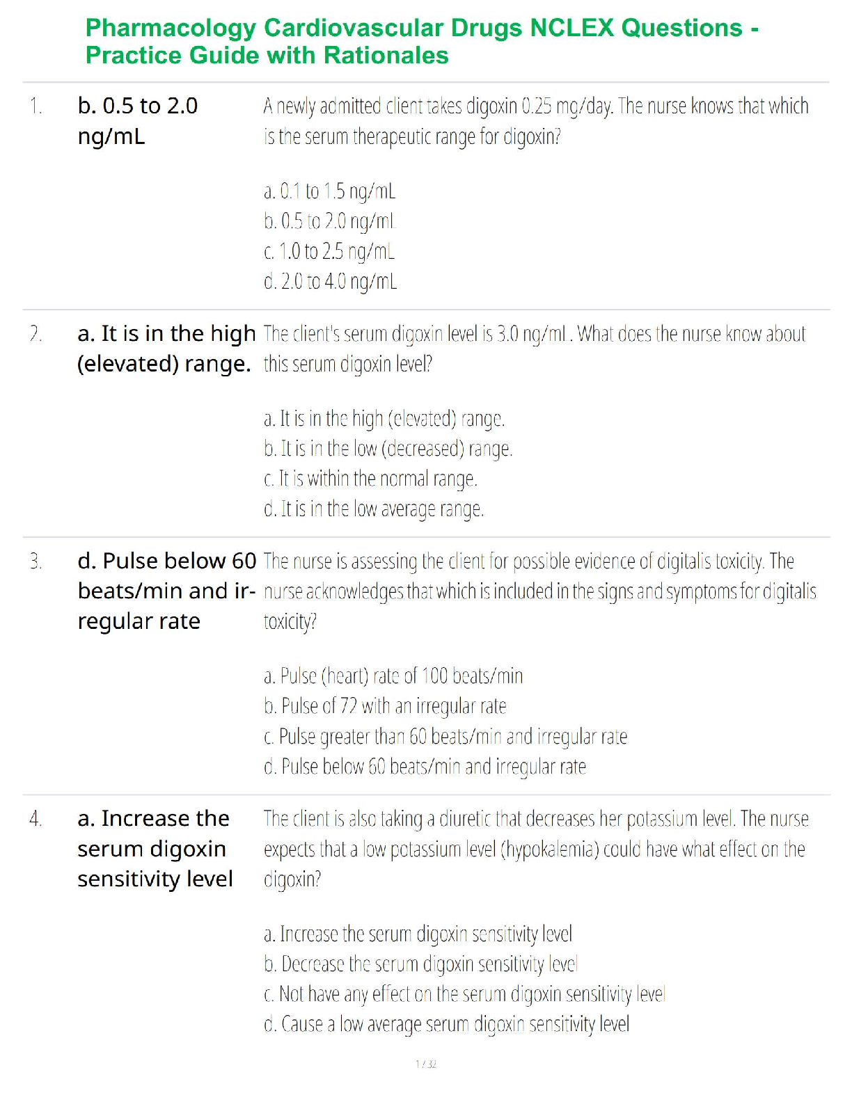 Pharmacology Cardiovascular Drugs NCLEX Questions - Practice Guide with Rationales (2025/2026 Edition)