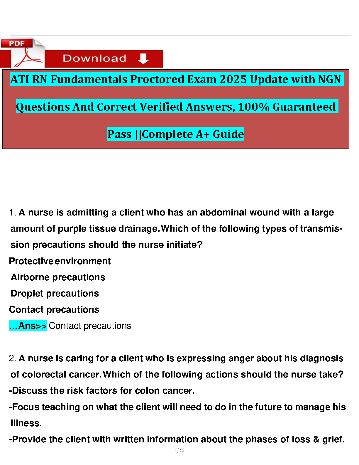 Ace your ATI RN Fundamentals Proctoring Exam with this comprehensive 2025 update, featuring NGN-style questions and 100% guaranteed verified answers. This guide is designed to help students pass their exams on the first attempt, avoiding resits and ensuring academic success.