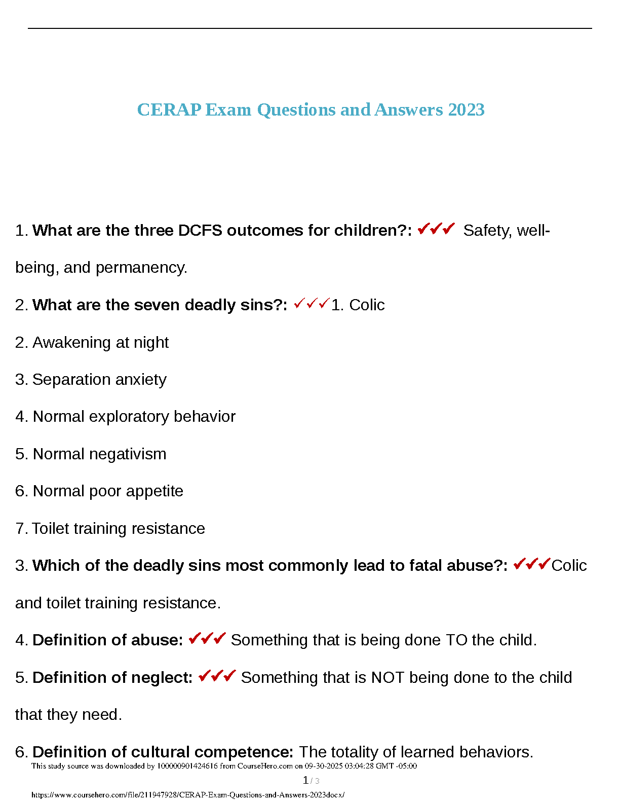 Prepare for the CERAP certification exam with this comprehensive Test Bank, featuring updated questions and expert-verified answers from the 2023 edition. This invaluable resource is meticulously designed to help students master critical concepts such as DCFS outcomes for children, the definitions of abuse and neglect, and fundamental principles of cultural competence. Specifically curated for the 2025/2026 academic year, this study guide provides the essential practice needed to pass your CERAP exam on your very first attempt, saving you time and stress from resits. Ensure your success with this focused and effective exam preparation tool, updated to reflect current examination standards.