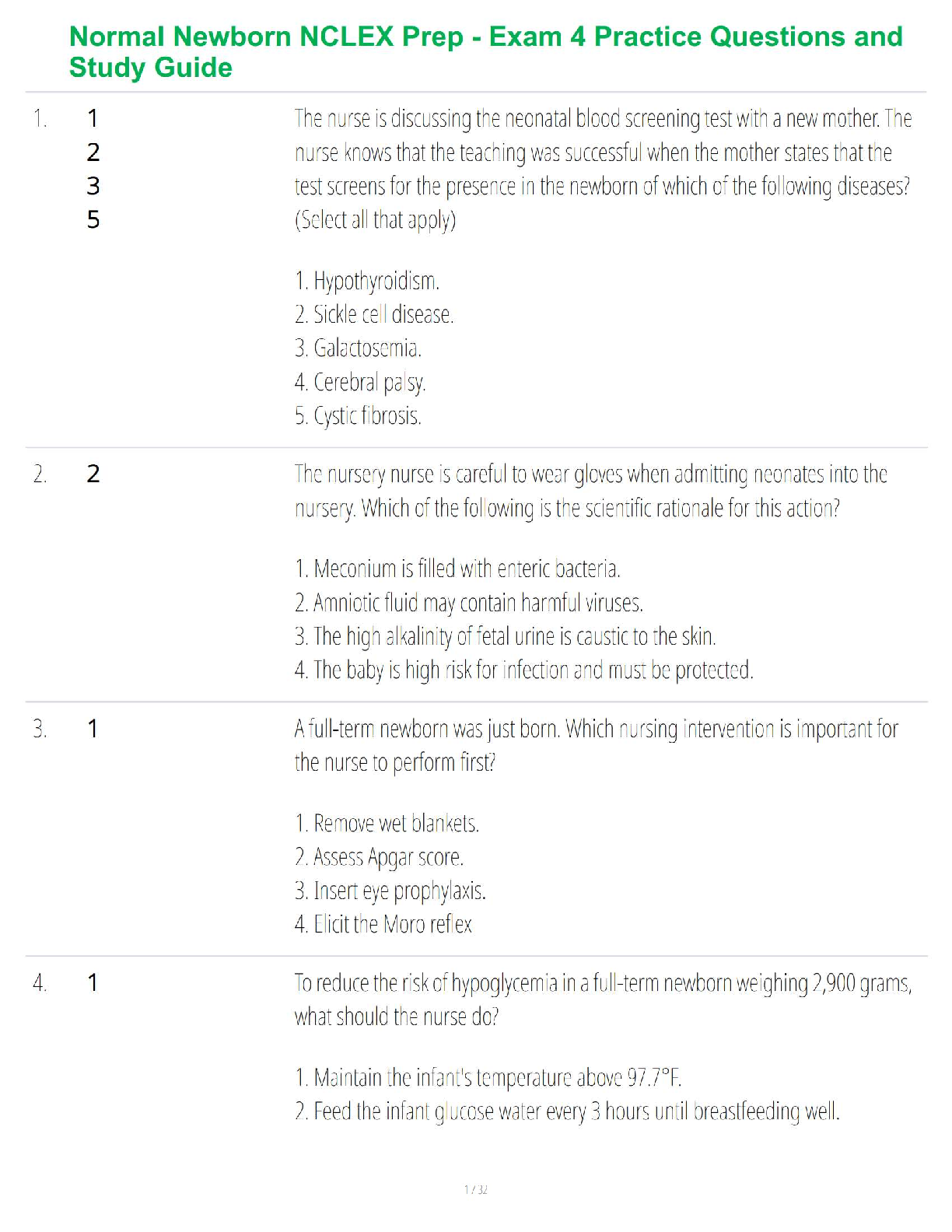 Prepare for your NCLEX exams with this comprehensive study guide featuring NCLEX-style practice questions focused on normal newborn care. Ace your exams on the first attempt and avoid resits with expertly crafted questions and essential knowledge for the 2025/2026 academic year.