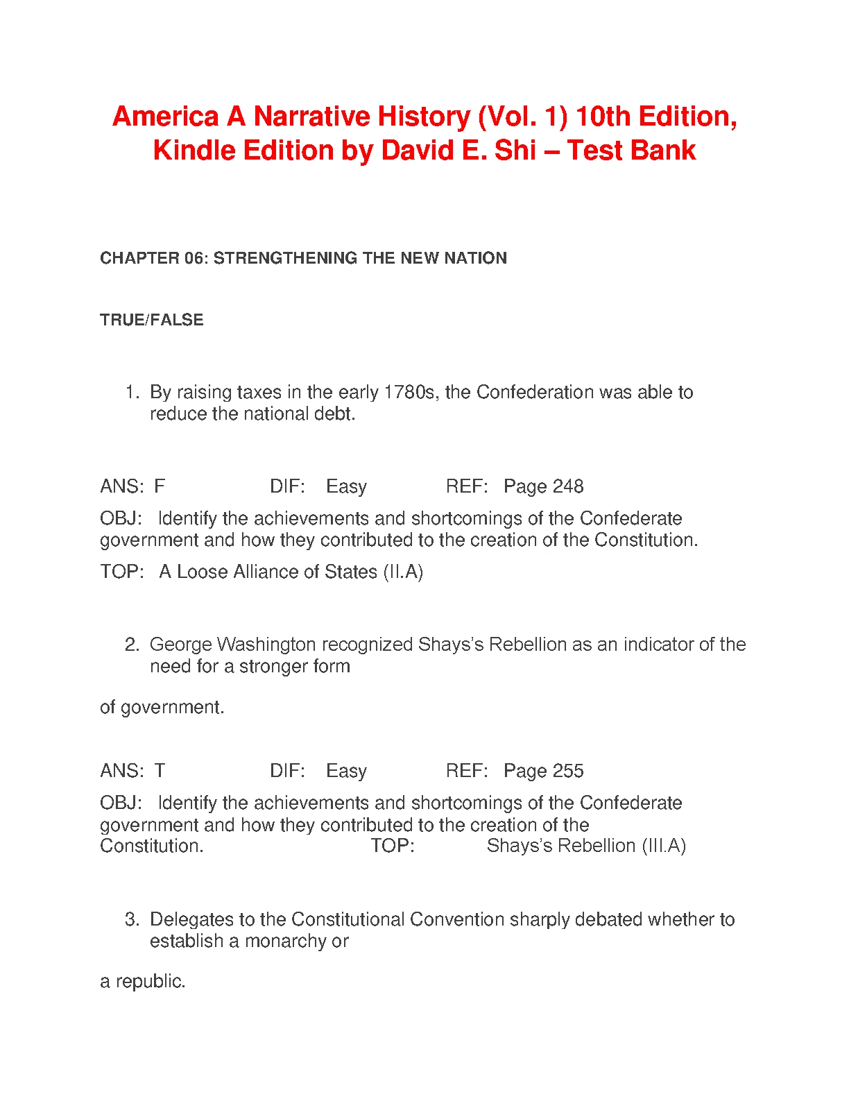 America A Narrative History (Vol. 1) 10th Edition, Kindle Edition by David E. Shi – Test Bank. DOWNLOAD on www.hackedexams.com INSTANTLY.